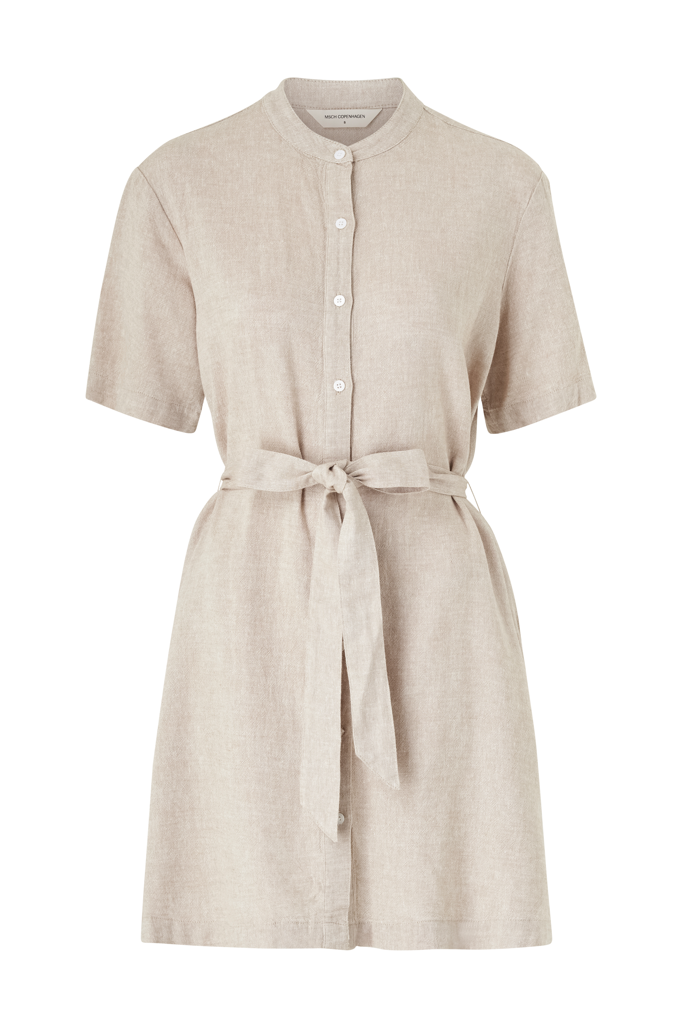 • Let udsvingende skjortekjole med bindebælte• Rund hals• Knapper foran• Kort ærme• Sidelommer• Længde: 91 cm i størrelse S