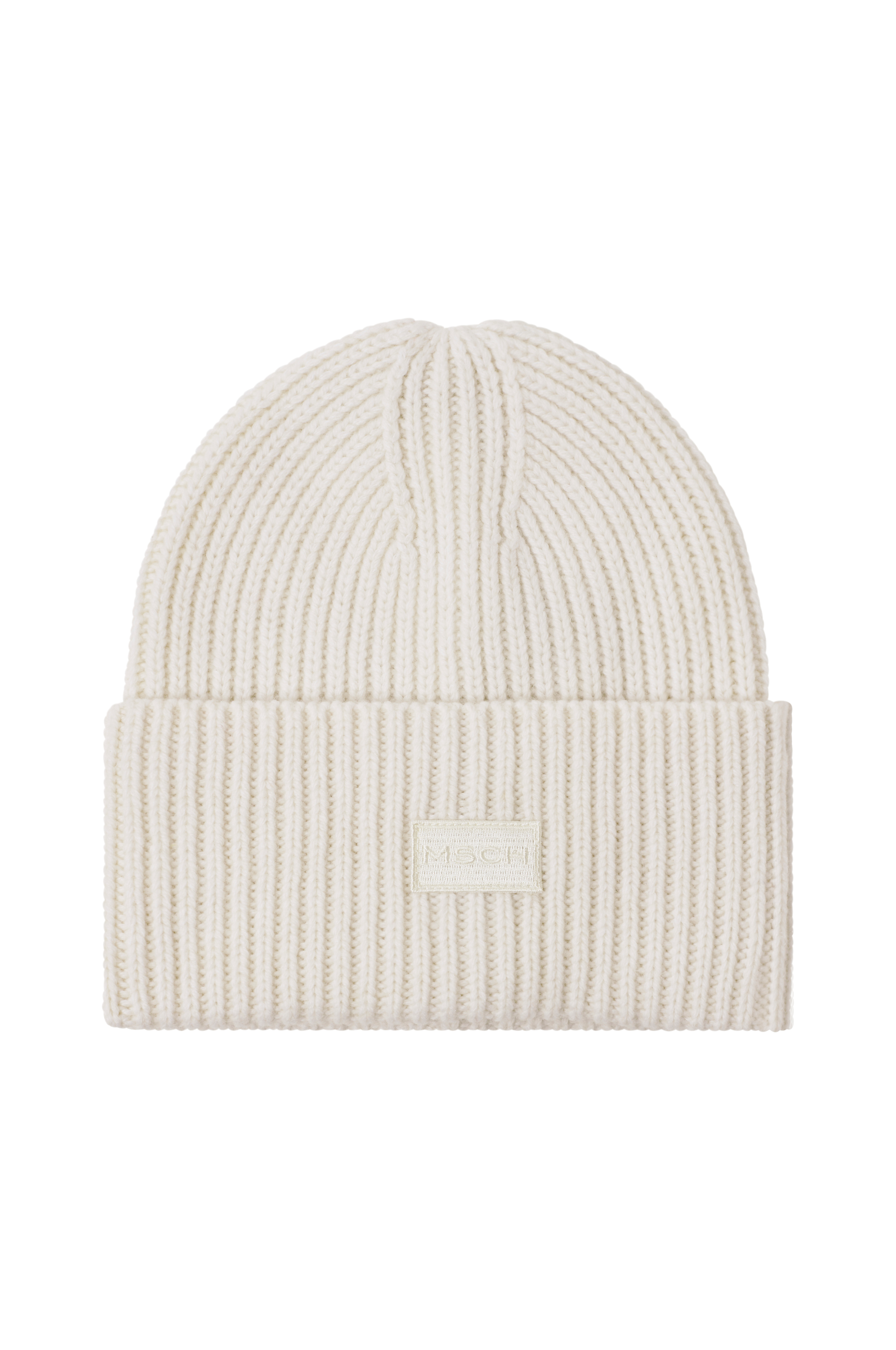 • Ribstrikket hue i uldblanding• Foldet søm med påsyet logomærke