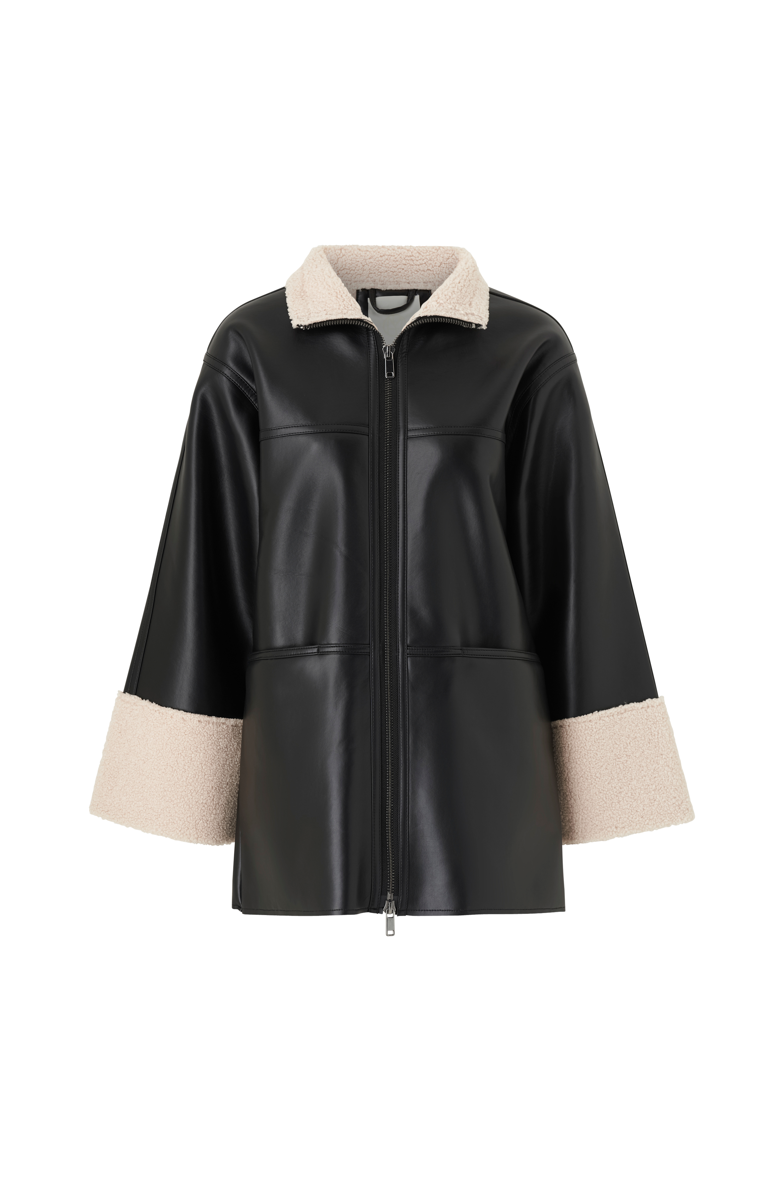 • Jakke i imiteret læder med for i teddy• Krave i teddy• Lynlås• Bred kant i teddy ved manchetterne• To lommer• Længde: 80 cm i størrelse XSS