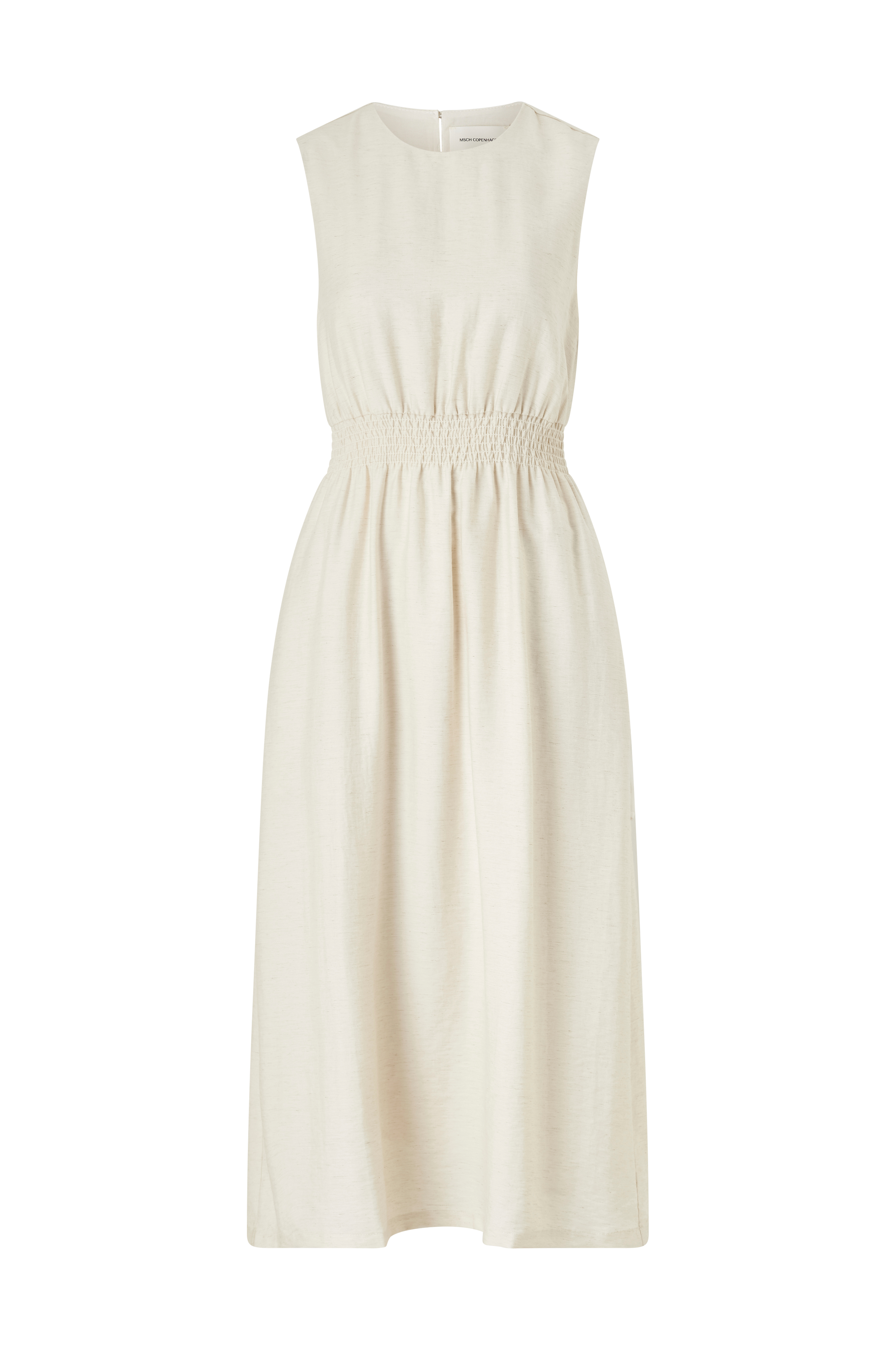 • Lang, ærmeløs model med bred smock ved taljen• Rund hals med knap i nakken• Indlagte sidelommer• Foret• Længde: 126 cm i størrelse S