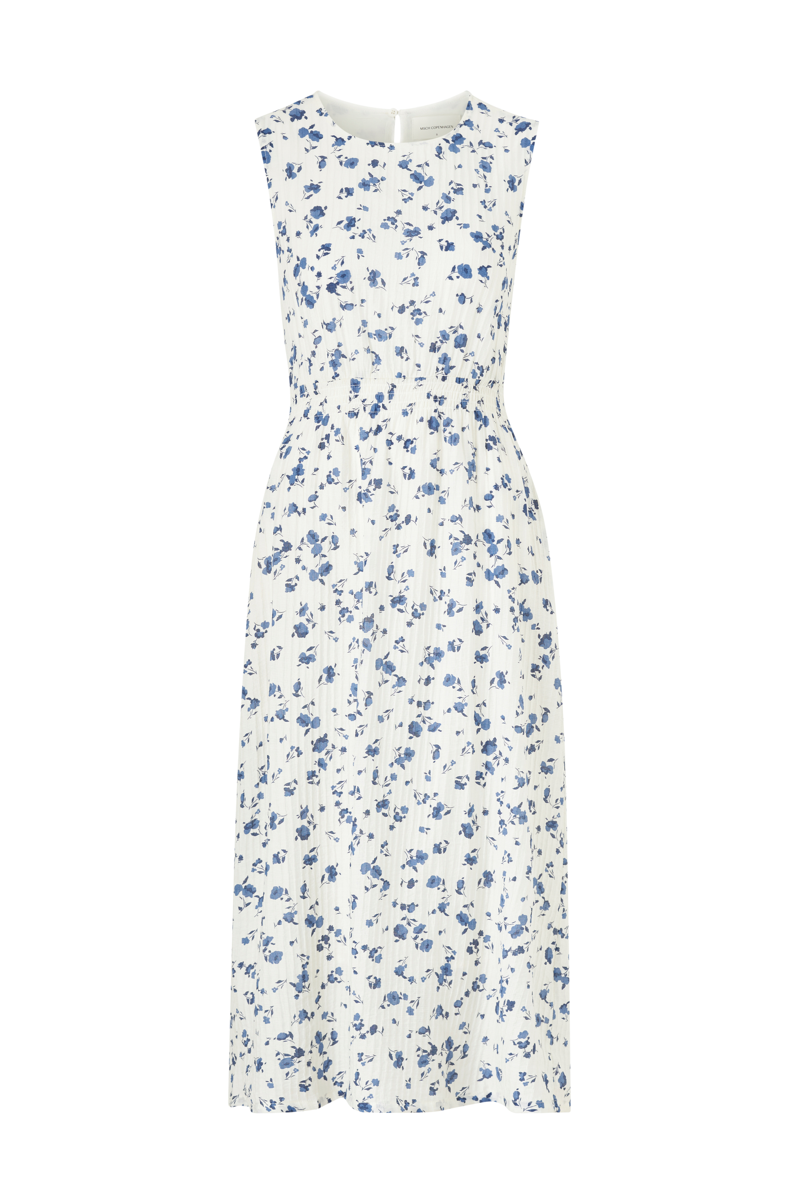 • Foret, ærmeløs kjole med struktur i stoffet• Rund halsudskæring• Nøglehulsåbning med knap bagpå• Smock ved taljen• Sidelommer• Længde: 126 cm i størrelse S