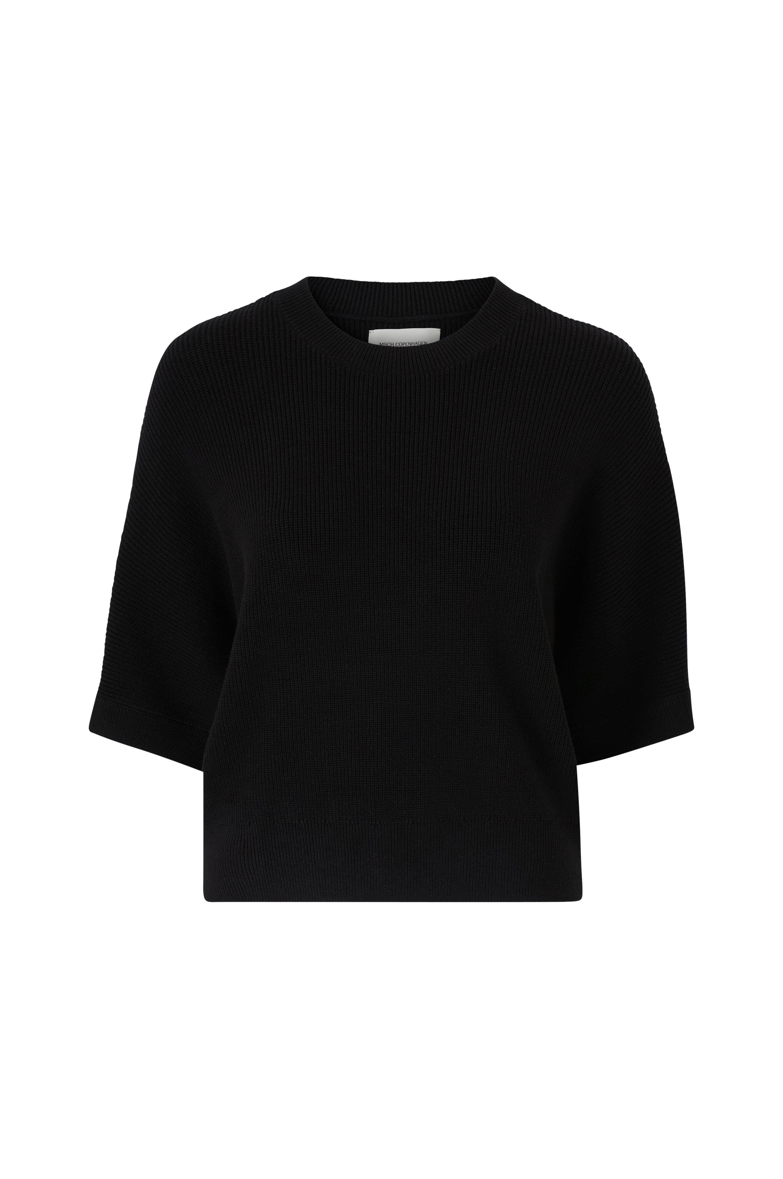• Bred model med rund hals• Halvlangt kimonoærme• Ribstrikkede kanter