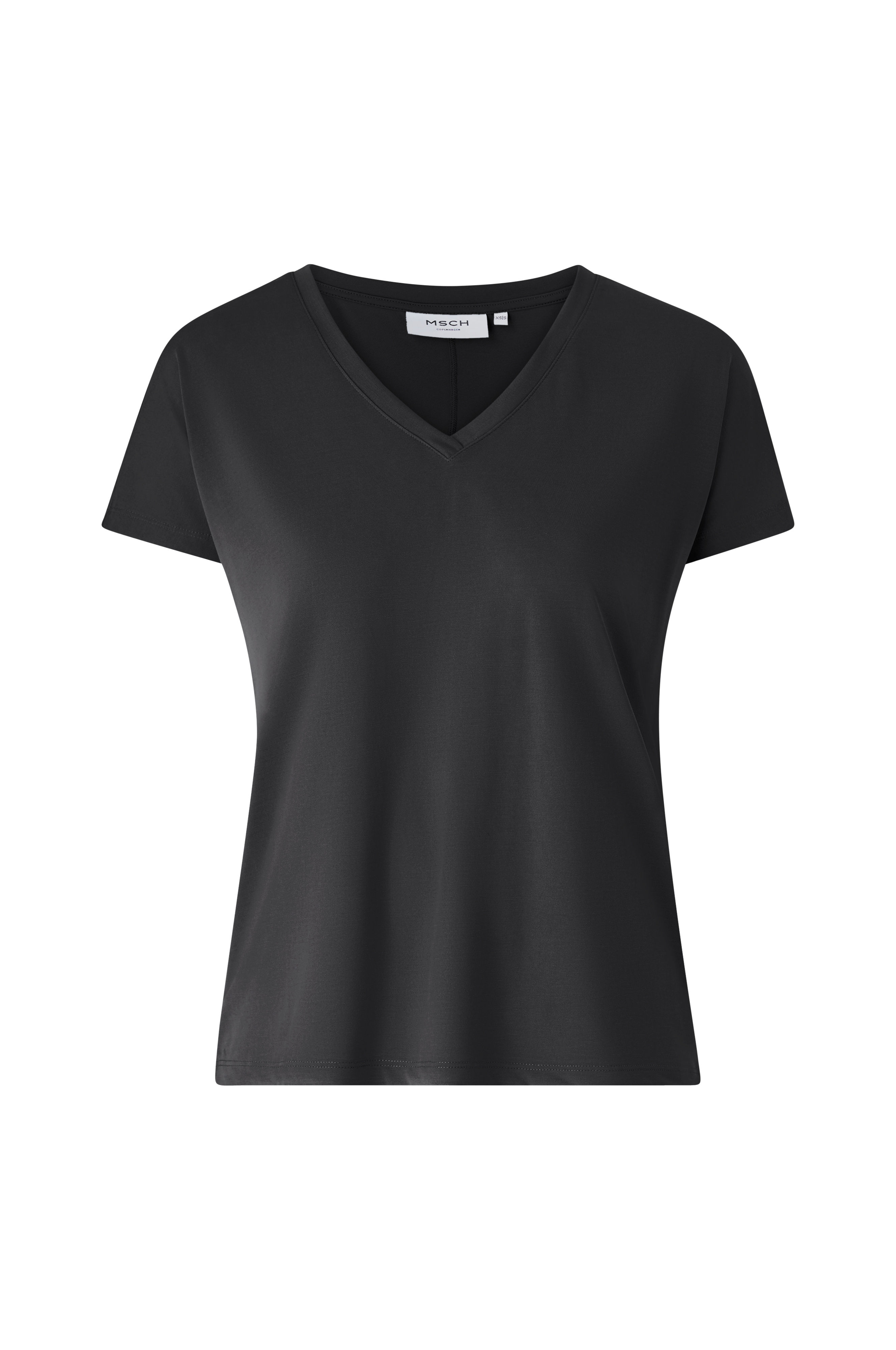 • V-udskæring• Korte ærmer• Fremstillet af jersey med glans