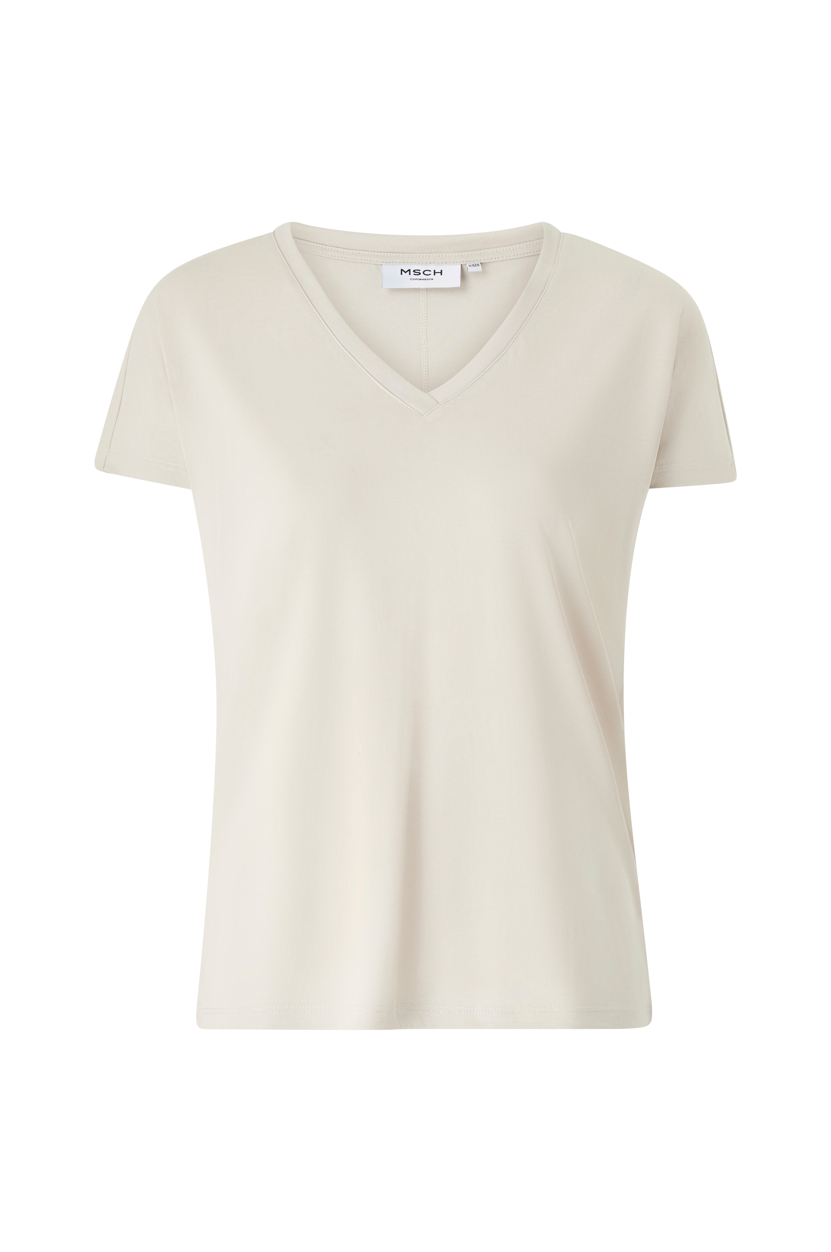 • V-udskæring• Korte ærmer• Fremstillet af jersey med glans