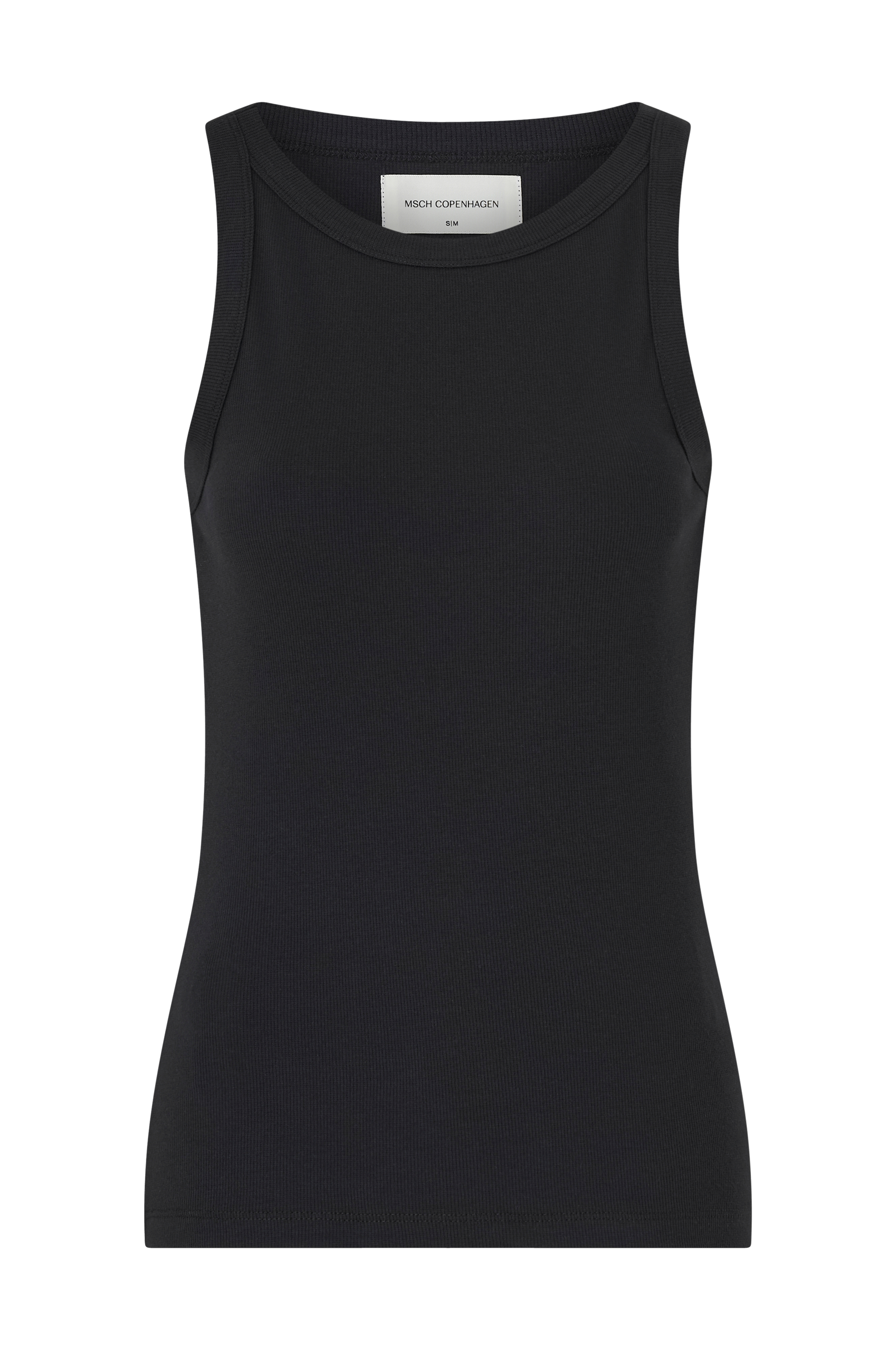 • Ærmeløs, elastisk top i ribbet bomuldsblanding