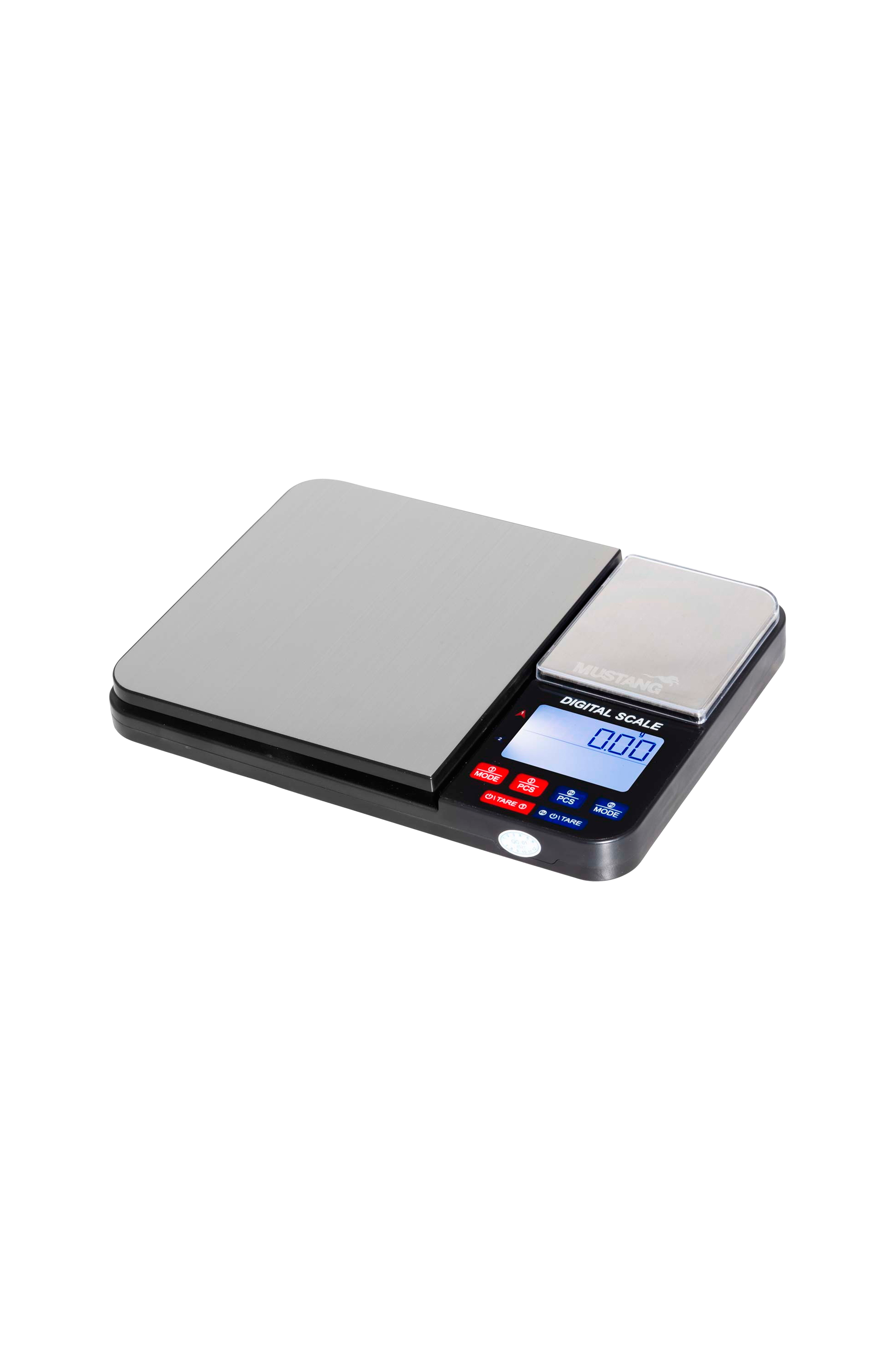 Digital køkkenvægt med to måleområder.Den store måler fra 0,5 g til 5000 g og den mindre fra 0,05 til 500 g. Særligt velegnet til opmåling af ingredienser til pizzadej.Måleområder i rustfrit stål.