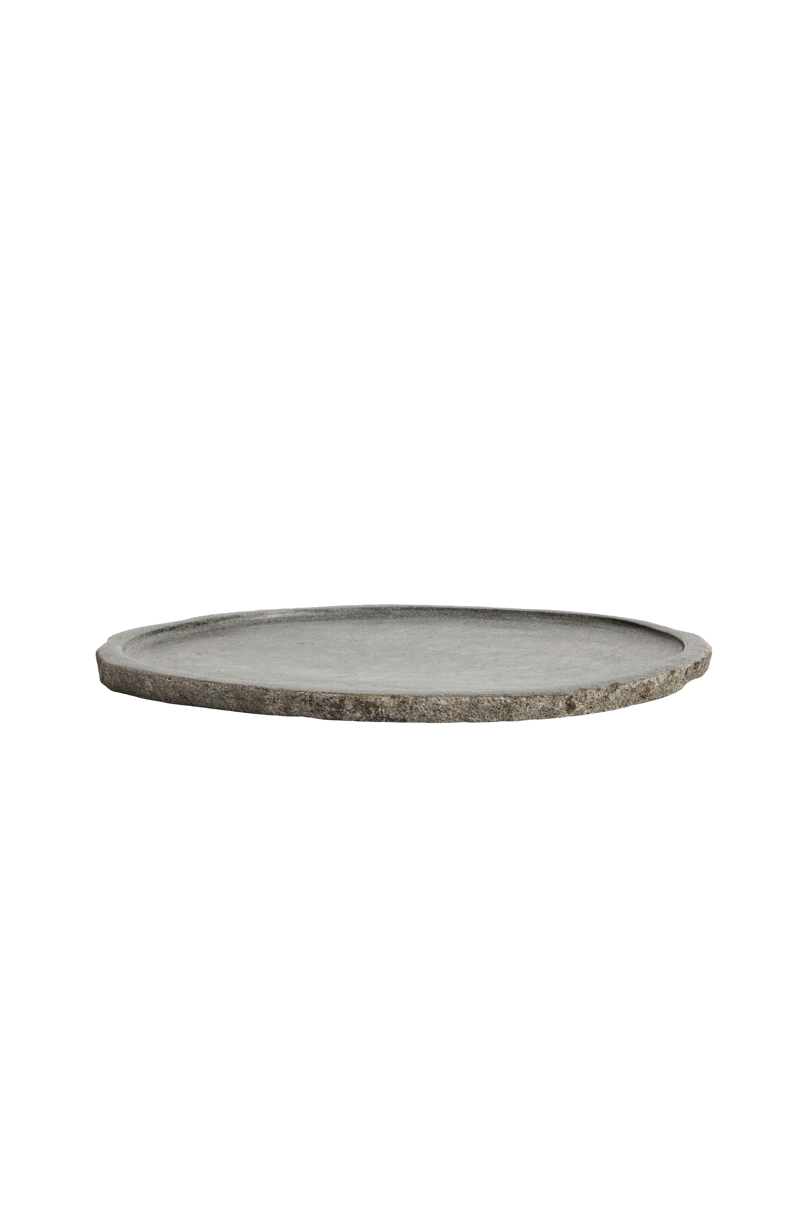 Fad Valley fra Muubs. Det er et unikt produkt, og eftersom det er håndlavet af et materiale af natursten, kan det variere i størrelse, form og farve. Fadet har mange anvendelsesmuligheder da det kan bruges som tallerken til steg og kødretter, servering af tapas eller som dekorationsbakke med salt og olie eller lys og nips.