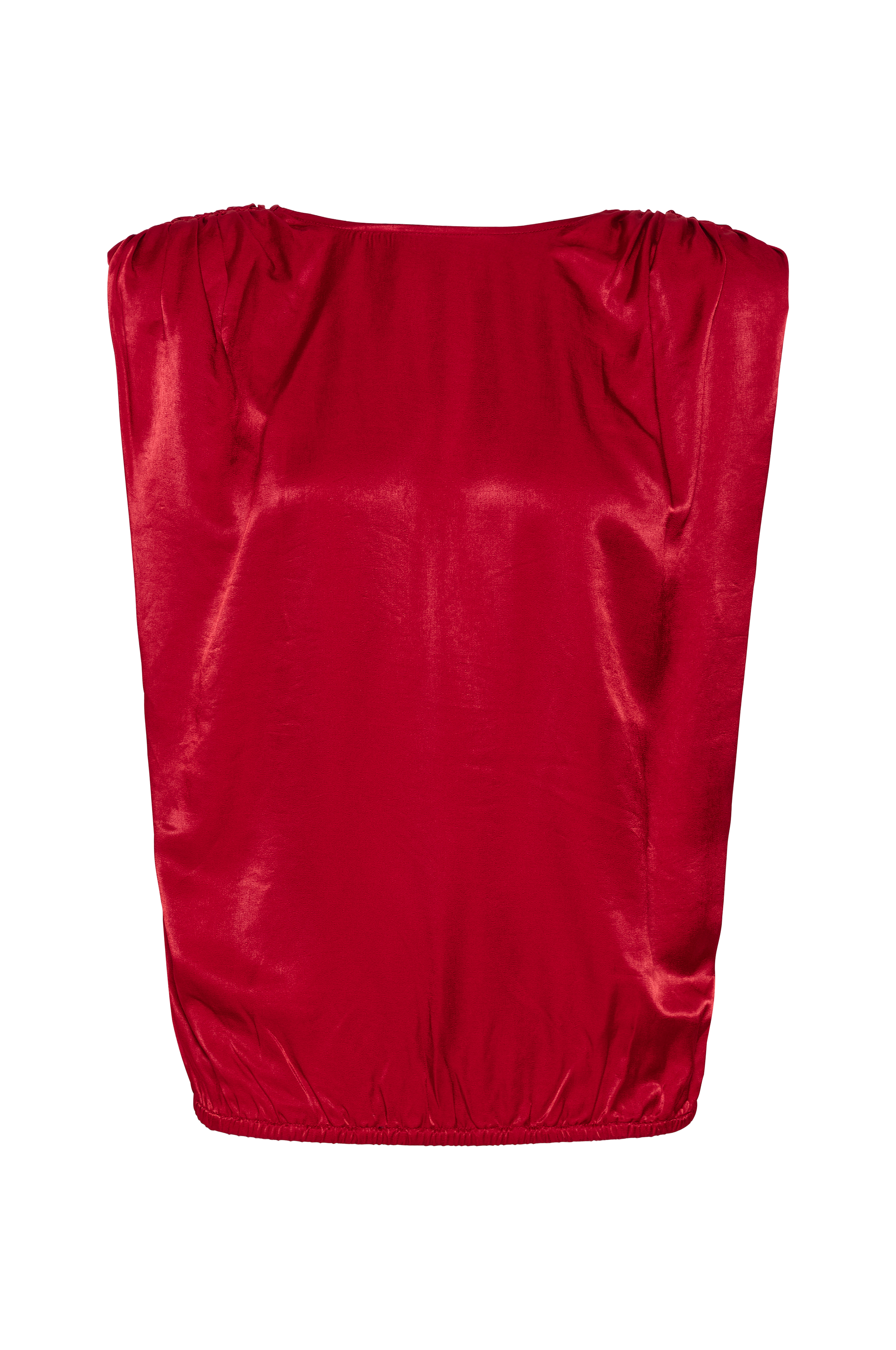• Ærmeløs bluse i skinnende viskoseblanding• Dyb v-udskæring med slå-om design• Forede skuldre• Elastik ved nederste kant