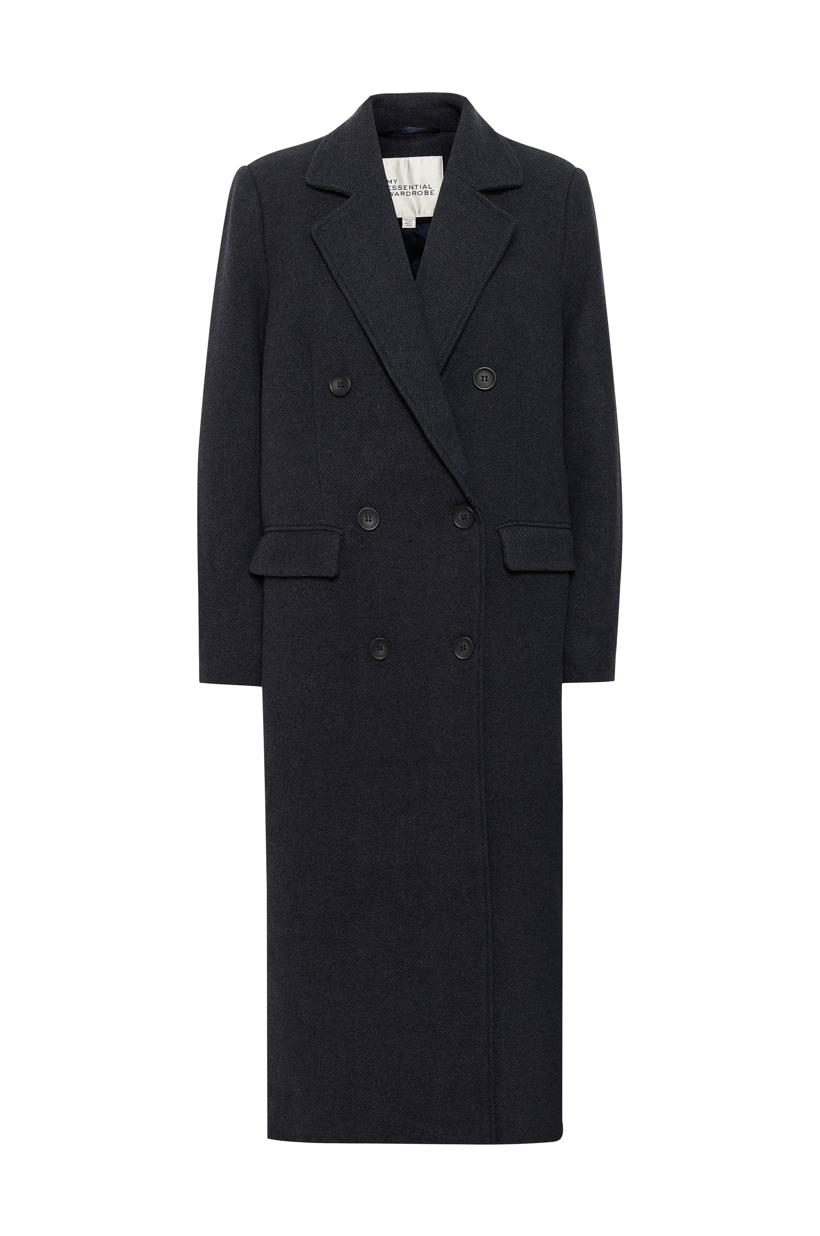 • Blød, foret frakke i uldblanding• Krave med revers• Knapper ved manchetterne• Dobbelt knaplukning• To paspolerede lommer• Slids nede bagved• Afslappet pasform• Længde: 121 cm i størrelse 36