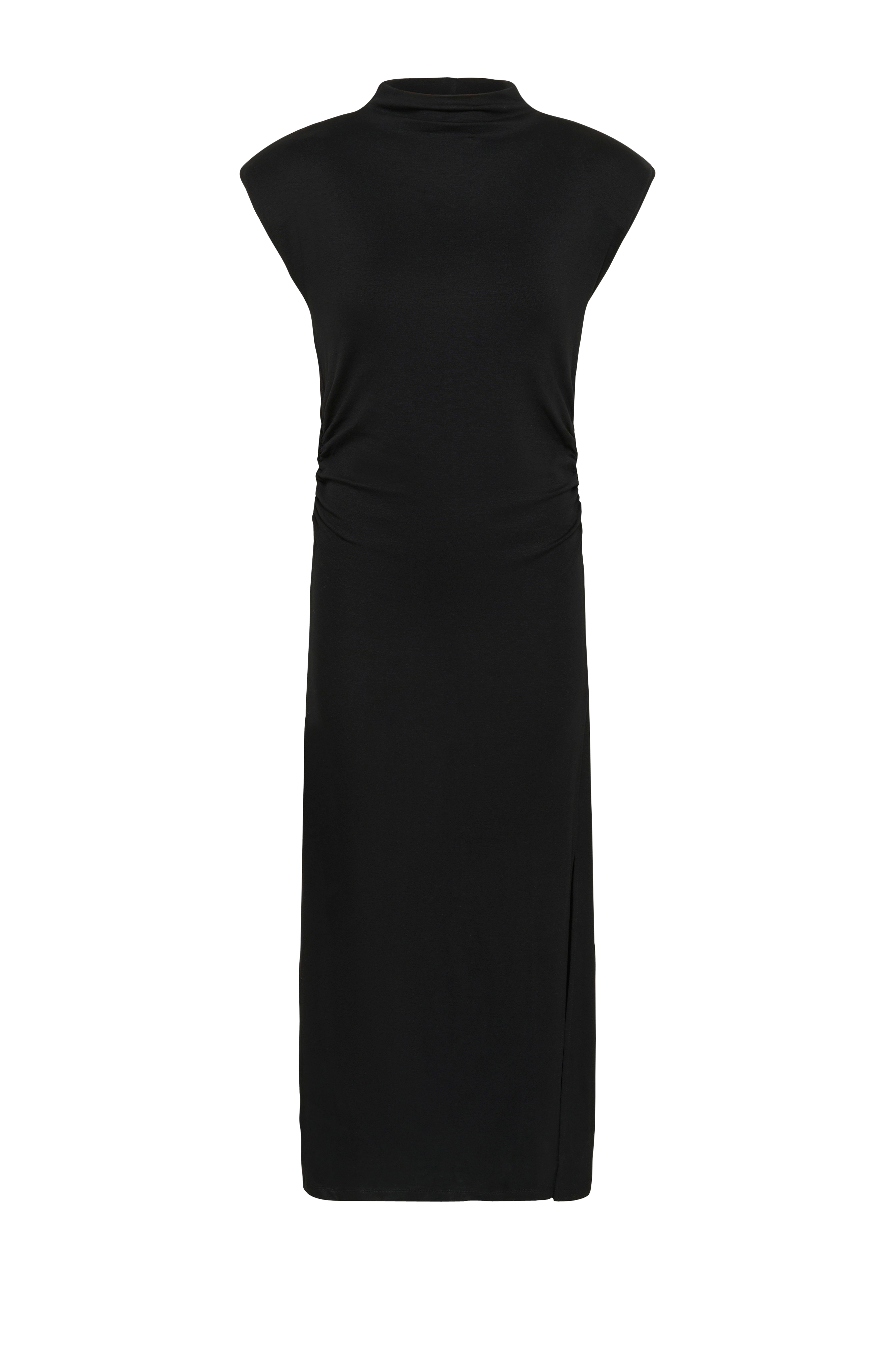 • Lang, elastisk, ærmeløs kjole med skulderpuder• Lille krave• Samling i siderne og bagpå• Slids nederst i den ene side• Længde: 158 cm i størrelse S