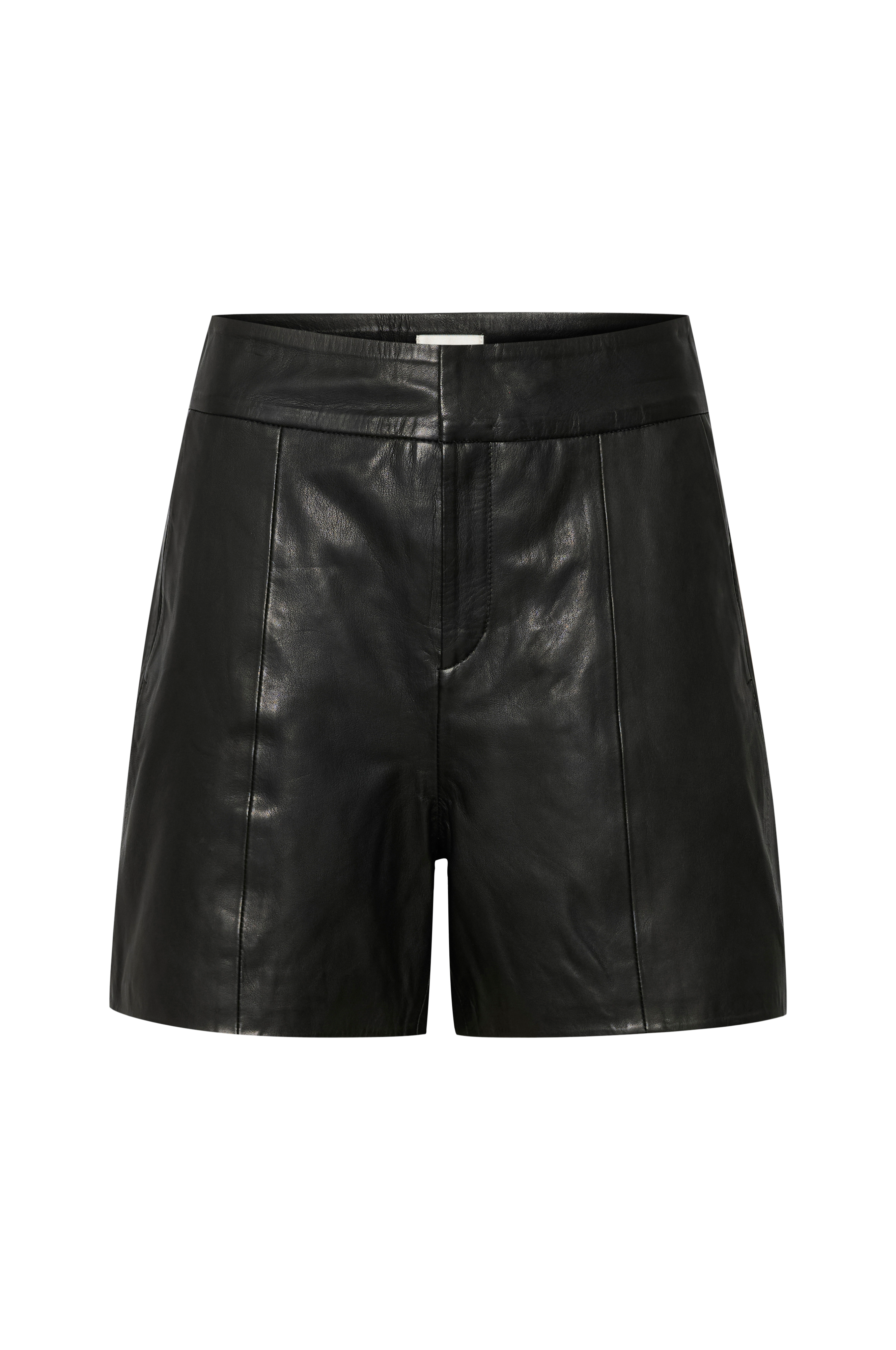 • Model i læder• Høj talje• Bred linning med spændelukninger foran og lynlås• Skrå lommer foran• Snydelommer bagpå• Foret• Indre benlængde: 13 cm i størrelse 36
