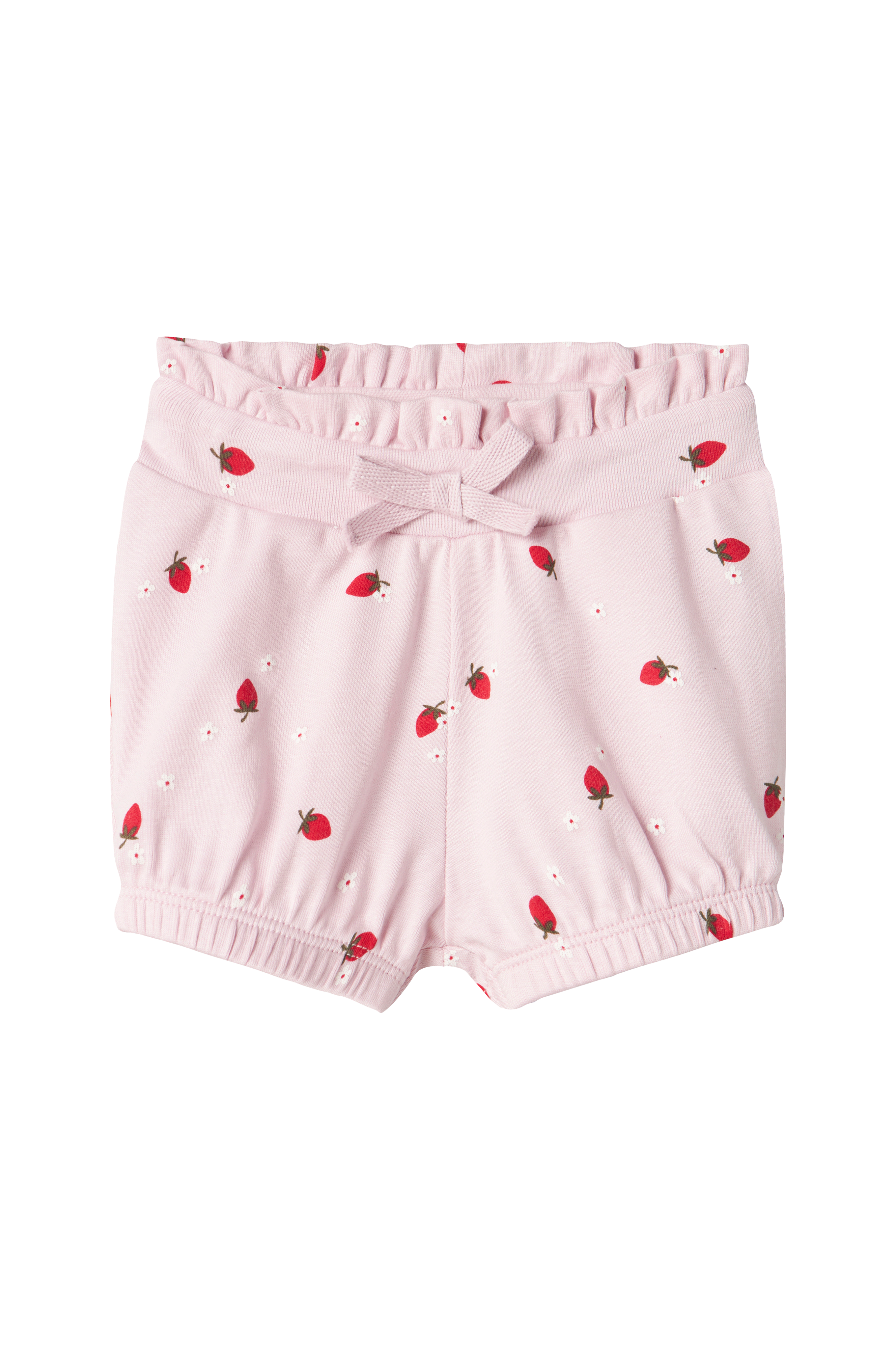 • Babyshorts i blød, elastisk jersey• Justérbar, elastisk talje med flæsekant• Elastik rundt om buksebensåbningerne