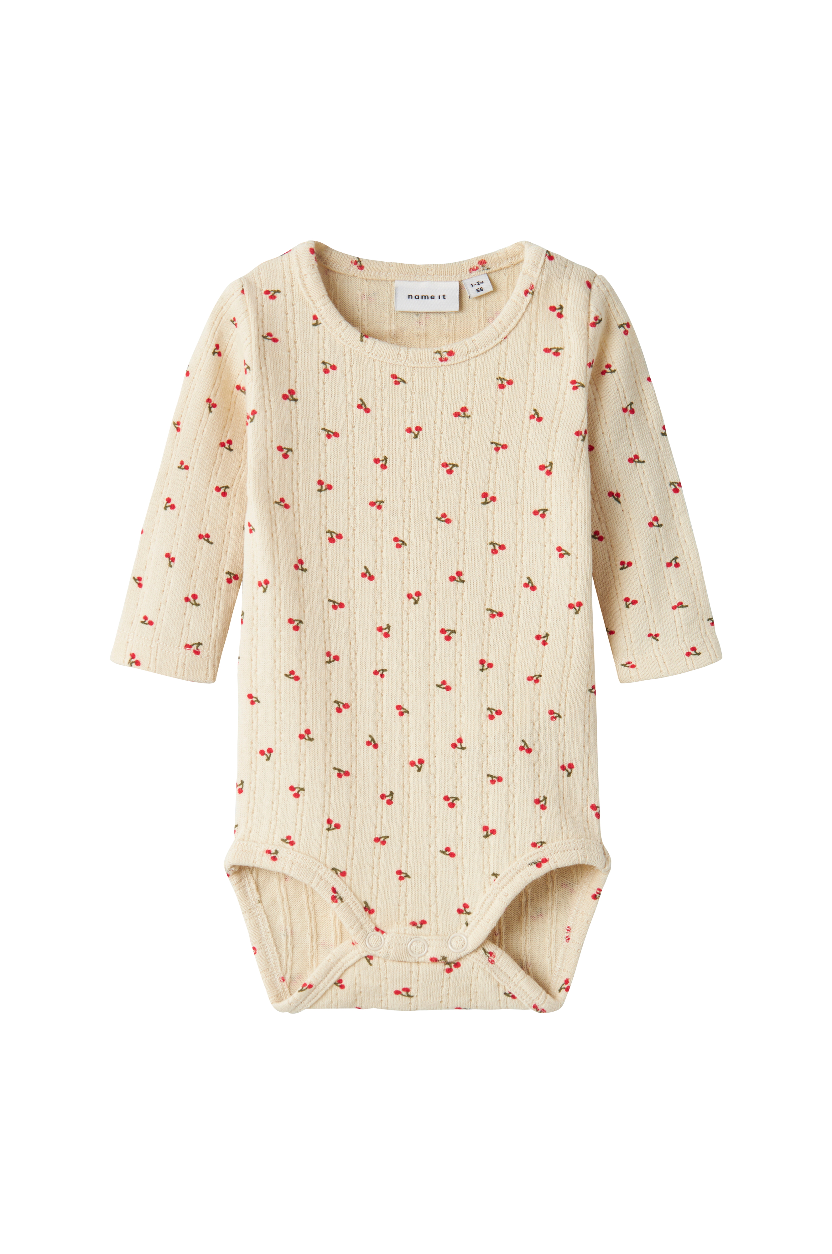 • Langærmet body i blød, elastisk, mønstret bomuld