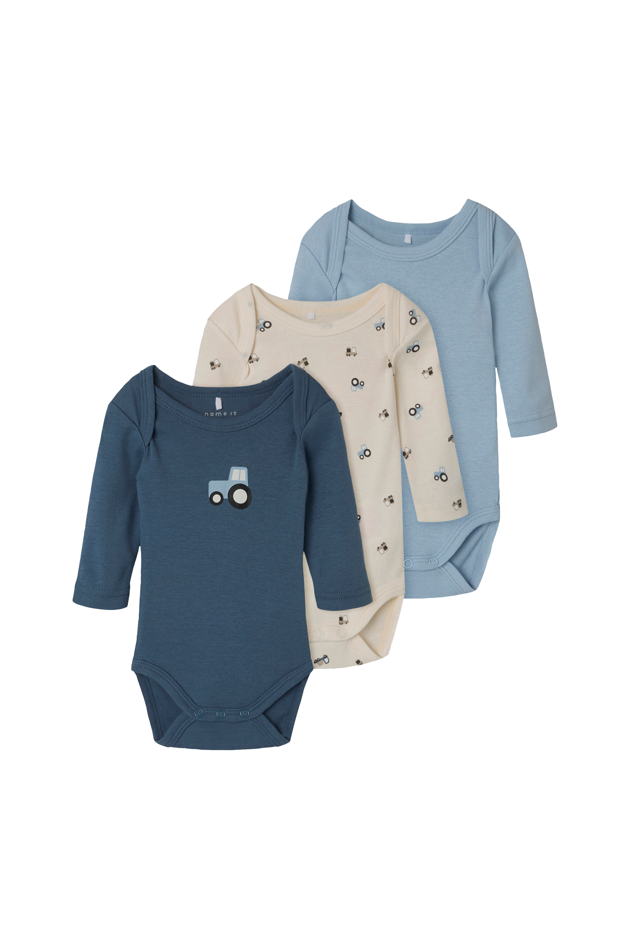 • Langærmet body i blød, elastisk bomuld• Rund hals• Syet i folder skuldre• Trykknapper ved skridtet• 3-pak