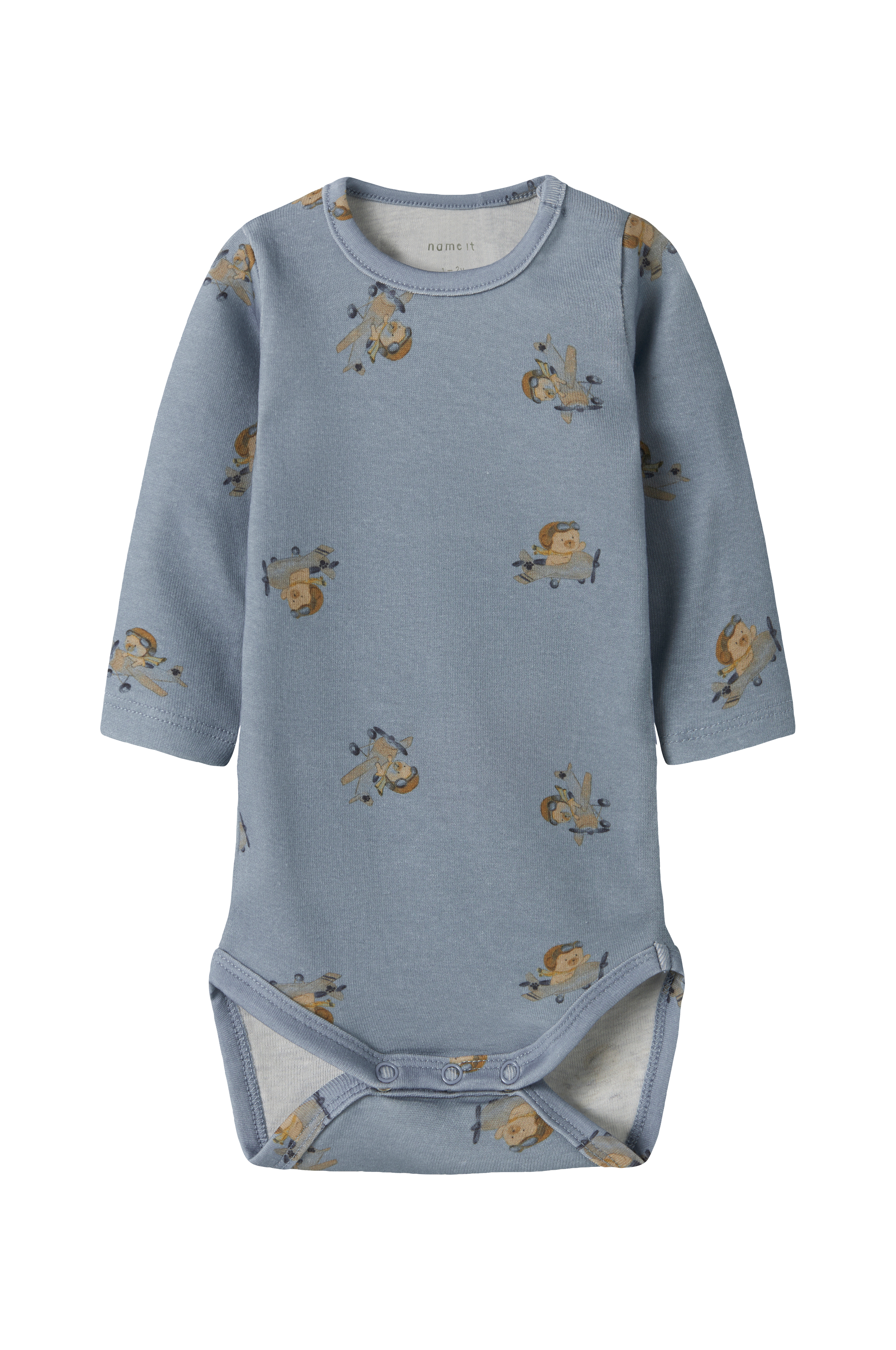 • Body i blød, elastisk bomuldsblanding• Printet mønster hele vejen rundt• Rund halsudskæring• Trykknapper ved skridtet