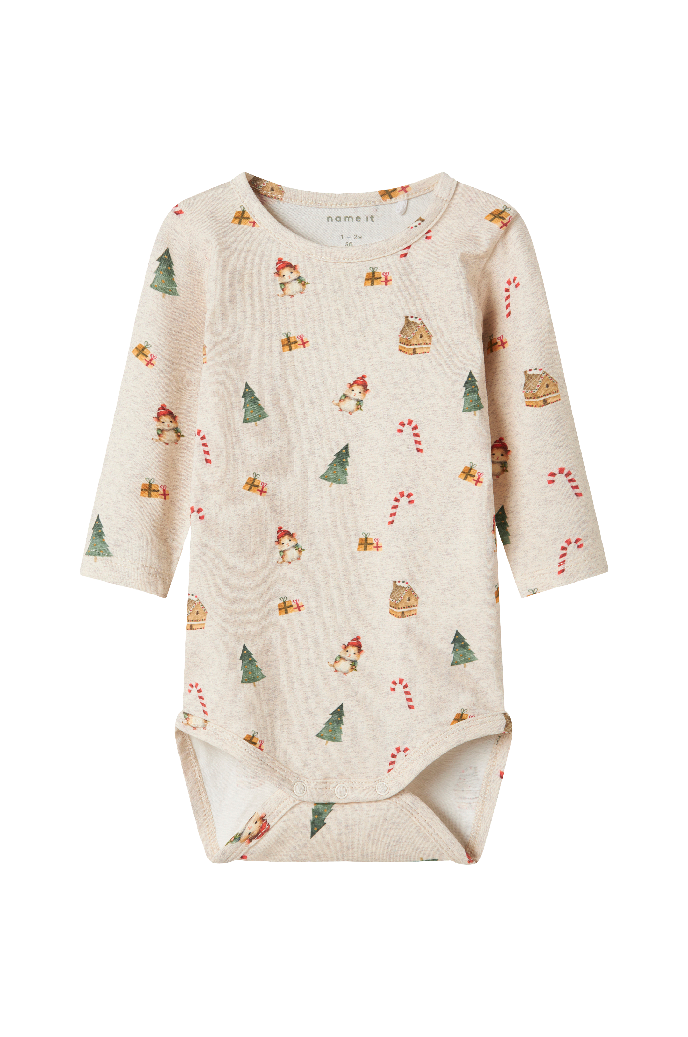 • Langærmet bodystocking med julemotiv i bomuldsjersey• Rund halsudskæring med trykknapper på en skulder• Trykknapper ved skridtet