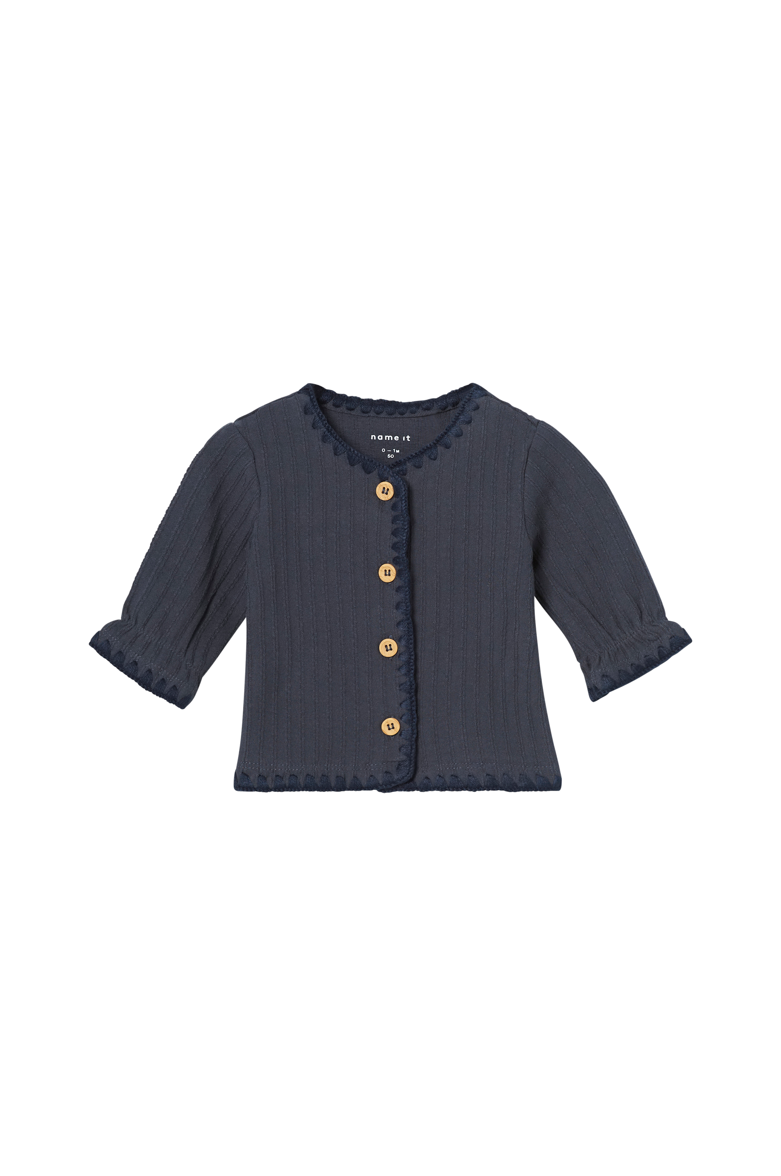 • Blød, elastisk kvalitet• Rund halsudskæring• Knapper foran• Blødt elastisk bånd ved manchetterne• Broderede kanter rundt om halsudskæringen, ved ærmeafslutningerne og nederst