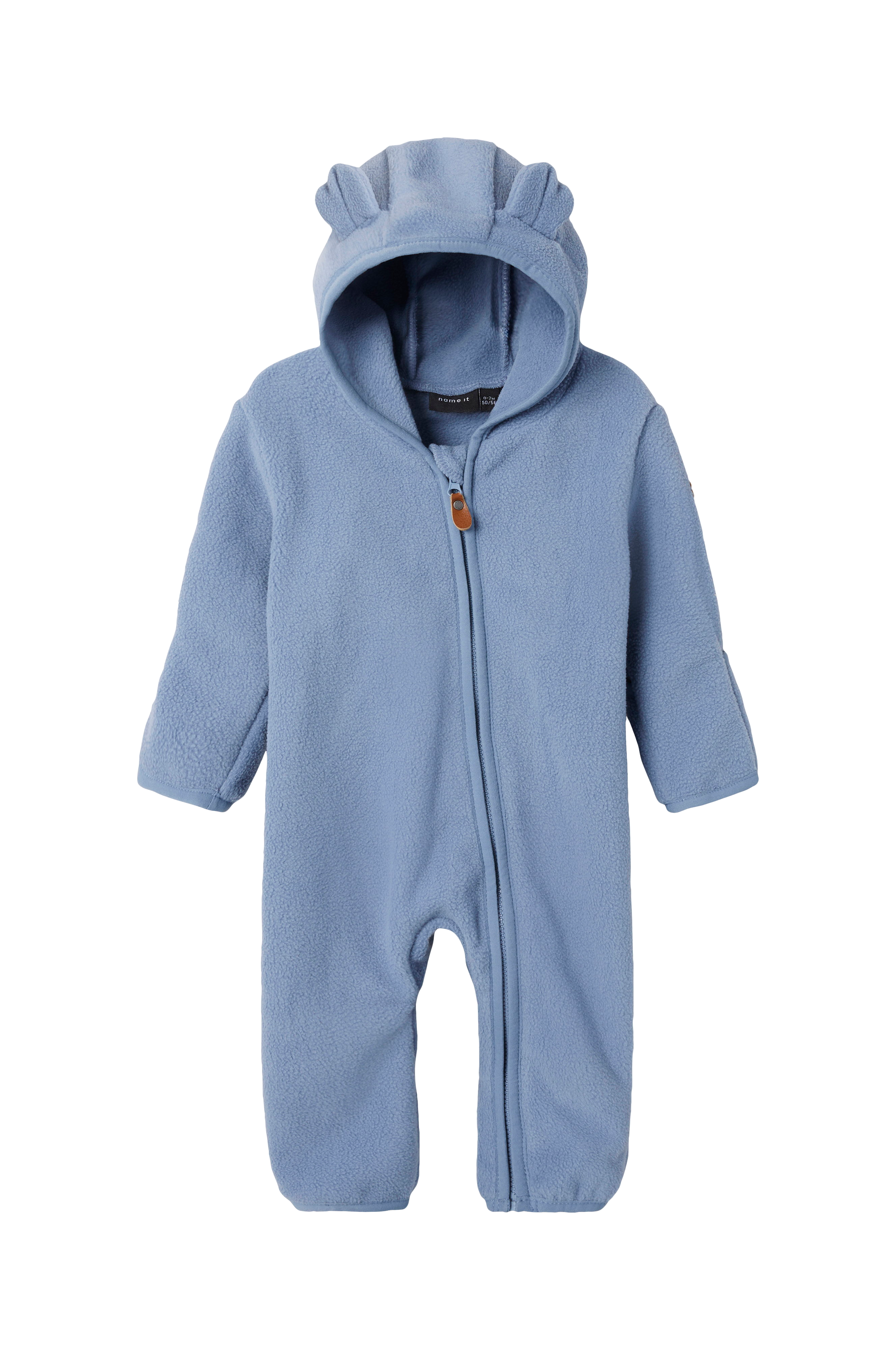 • Heldragt i blød fleece• Hætte• Lang lynlås• Overfold ved manchetterne og ved enden af benene• Bløde, elastiske båndkanter ved ærmeafslutningerne og ved enden af benene