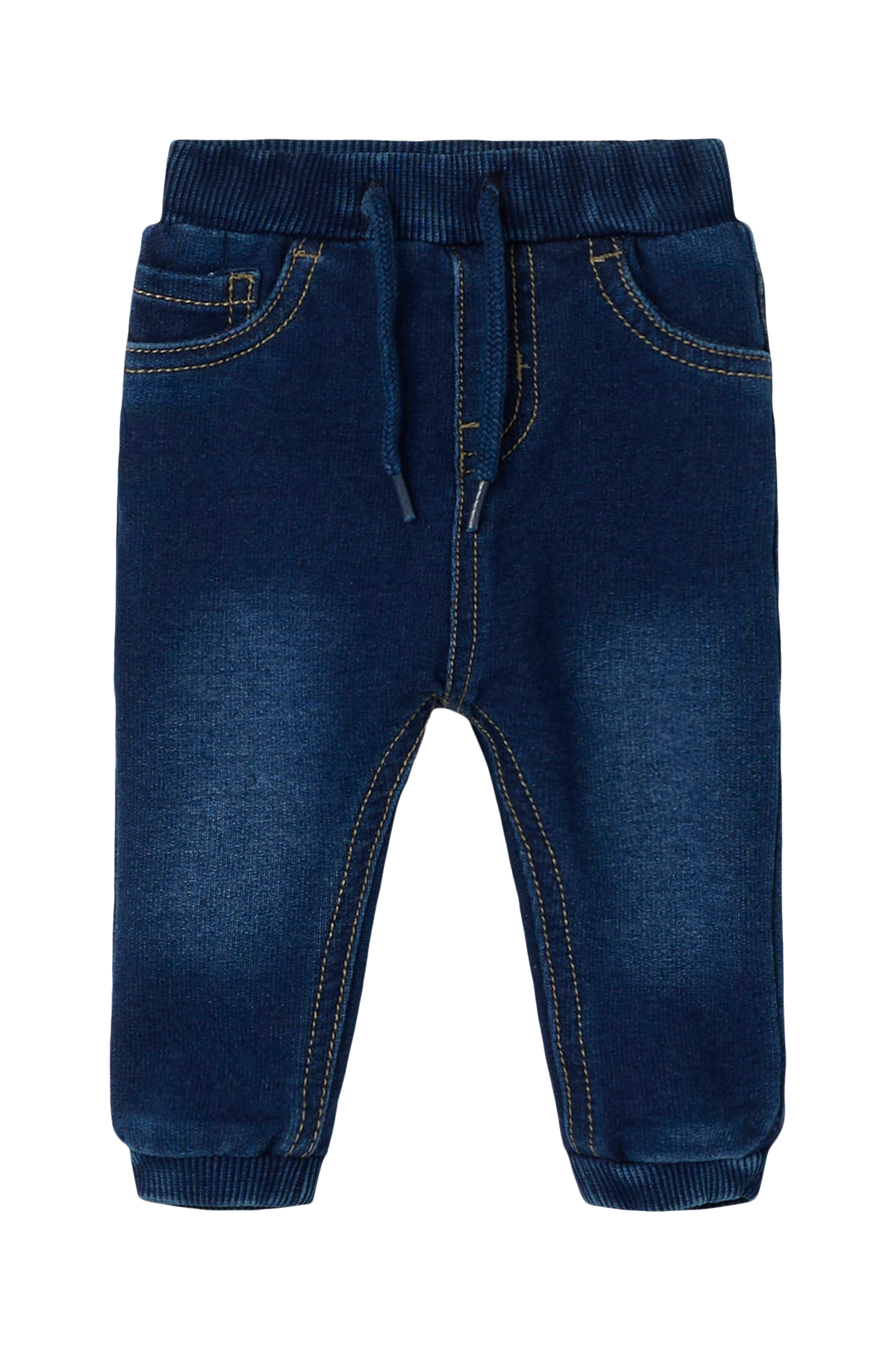 • Træningsbukser i denim• Elastisk, justérbar talje med træksnørre• Femlommemodel• Snydegylp• Ribmanchetter ved enden af benene