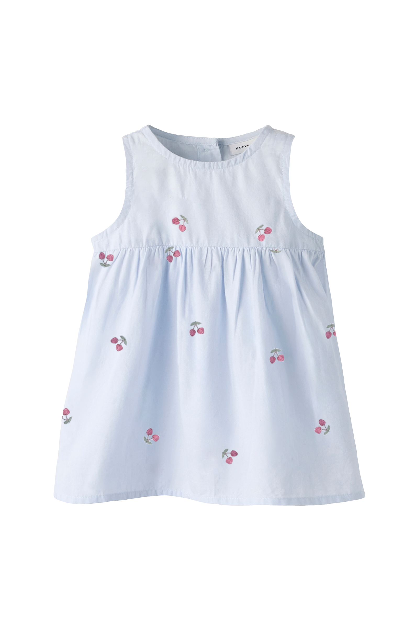 • Ærmeløs model med svaj• Broderet mønster• Knapper i ryggen
