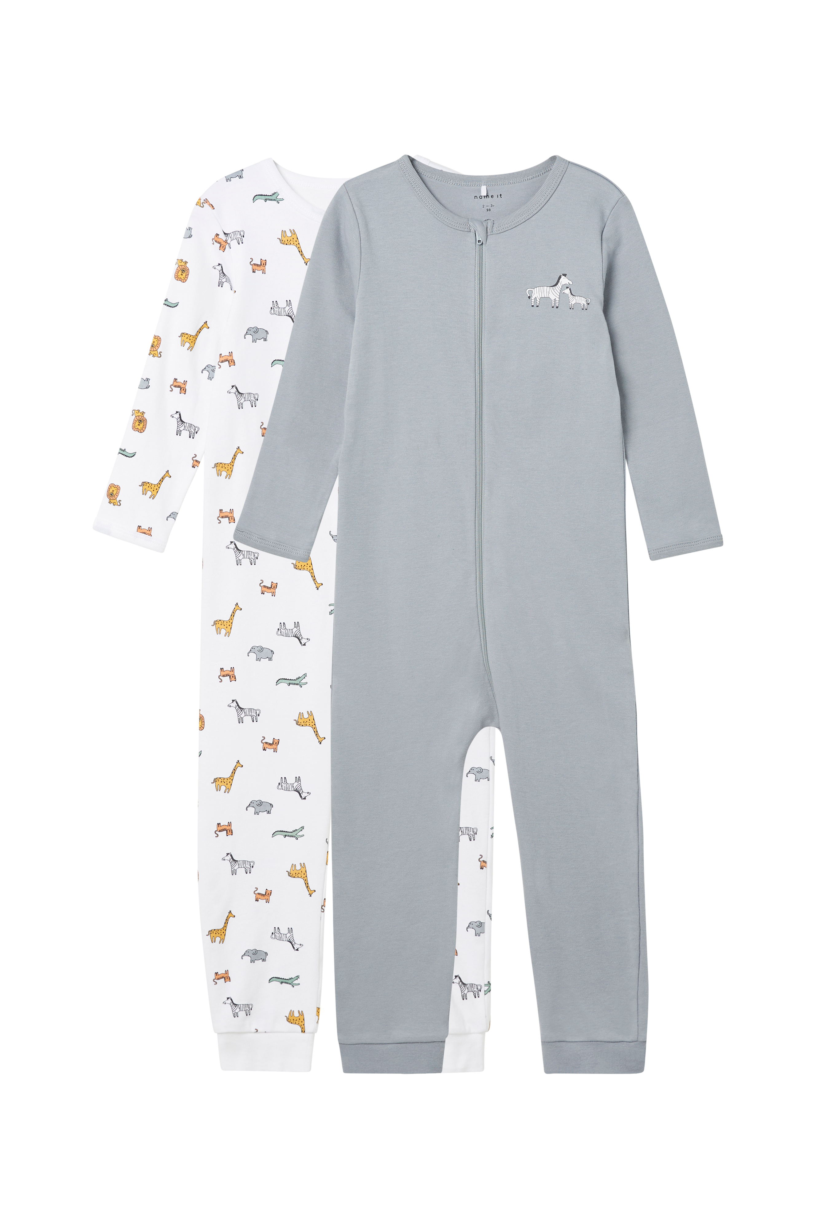 Dragt i bomuldsjersey med lynlås foran og ribkant i benkant.