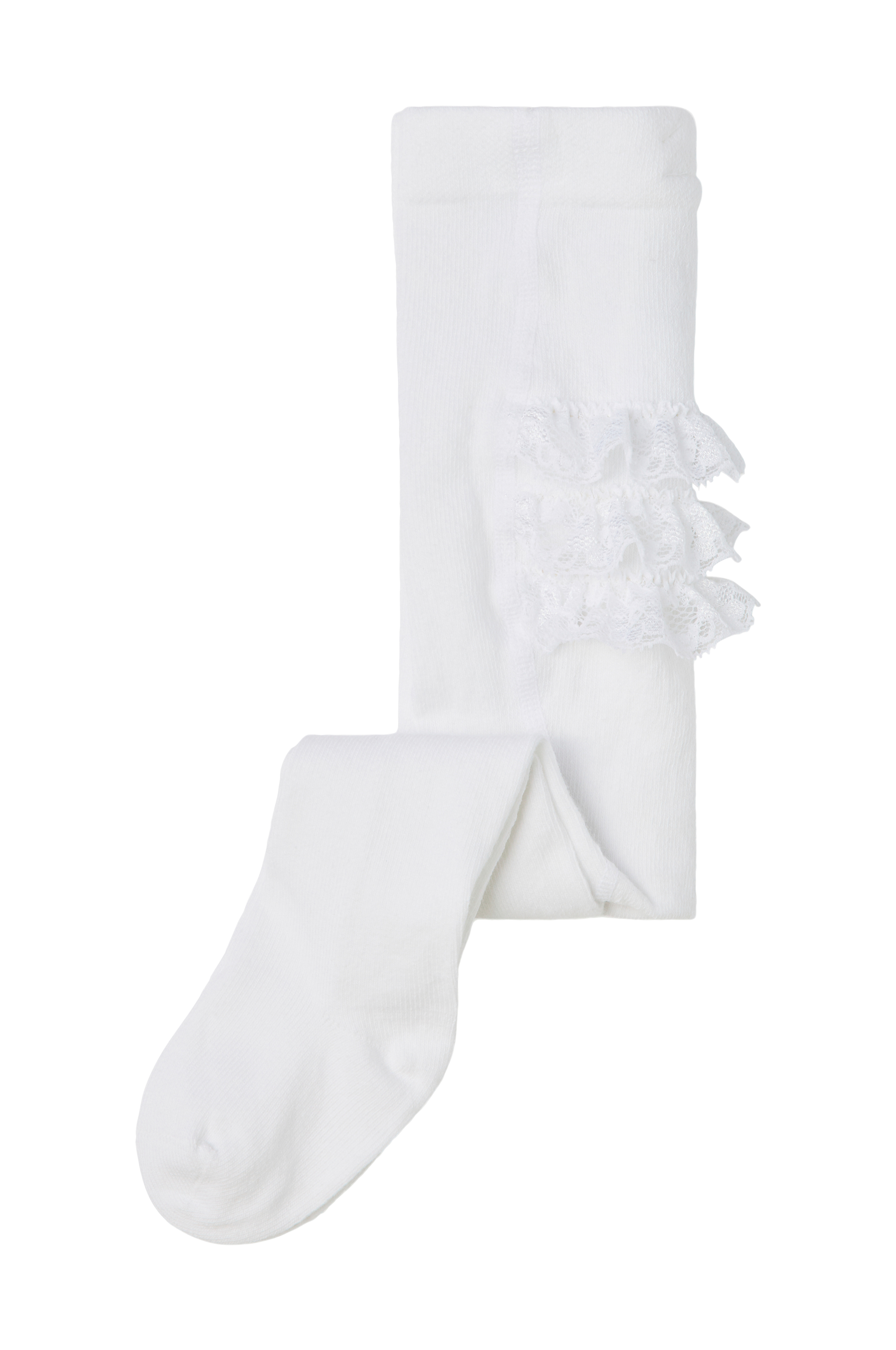 • Fintstrikkede strømpebukser• Hel fod• Elastisk talje• Blondevolanter bagved