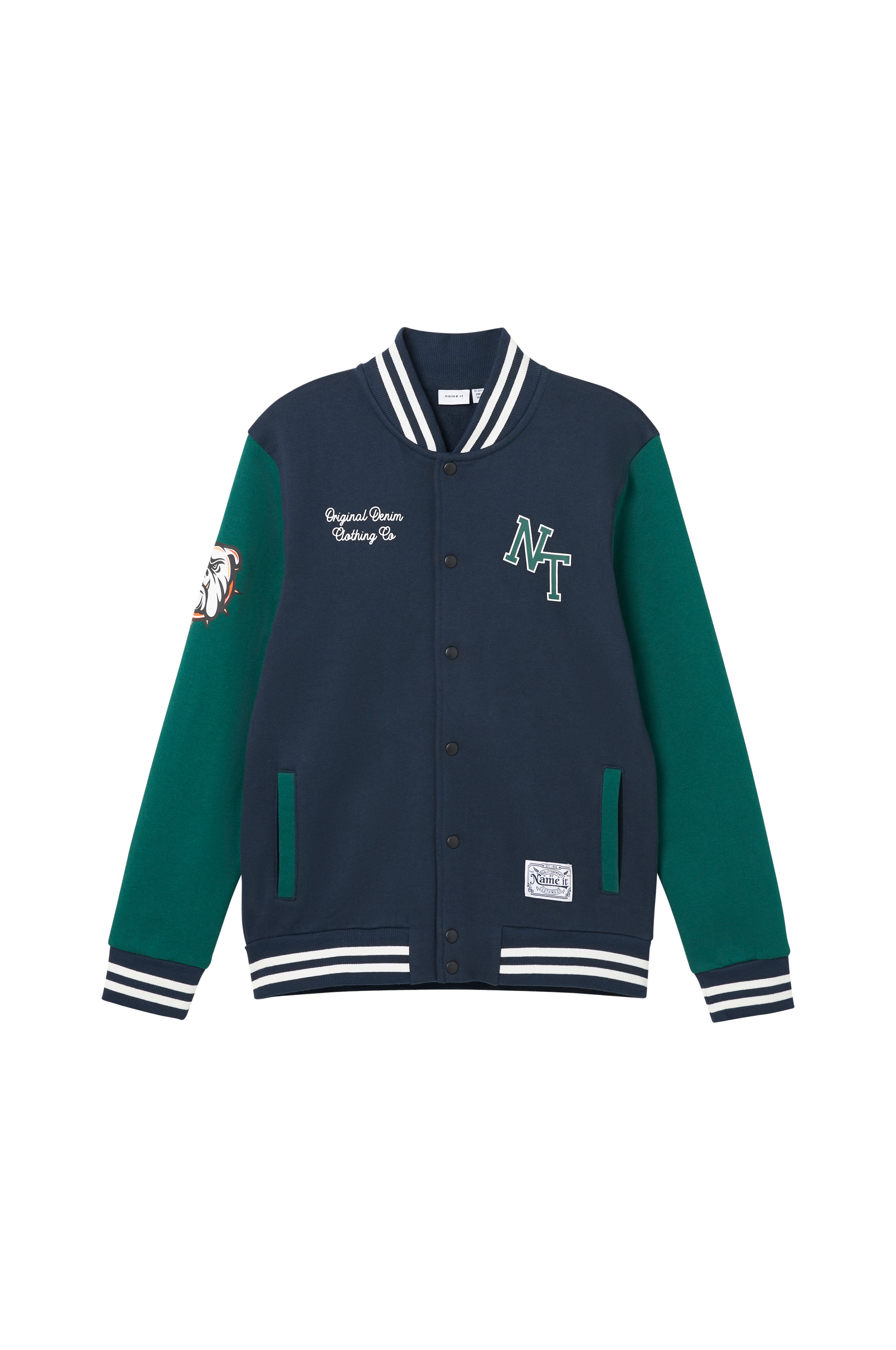Cardigan i sweathirtstof med blød, børstet inderside. Krave i rib og trykknapper. To lommer. Printede detaljer på ærmer og foran. Påsyet mærke forneden. Ribkant i ærmekant og forneden.