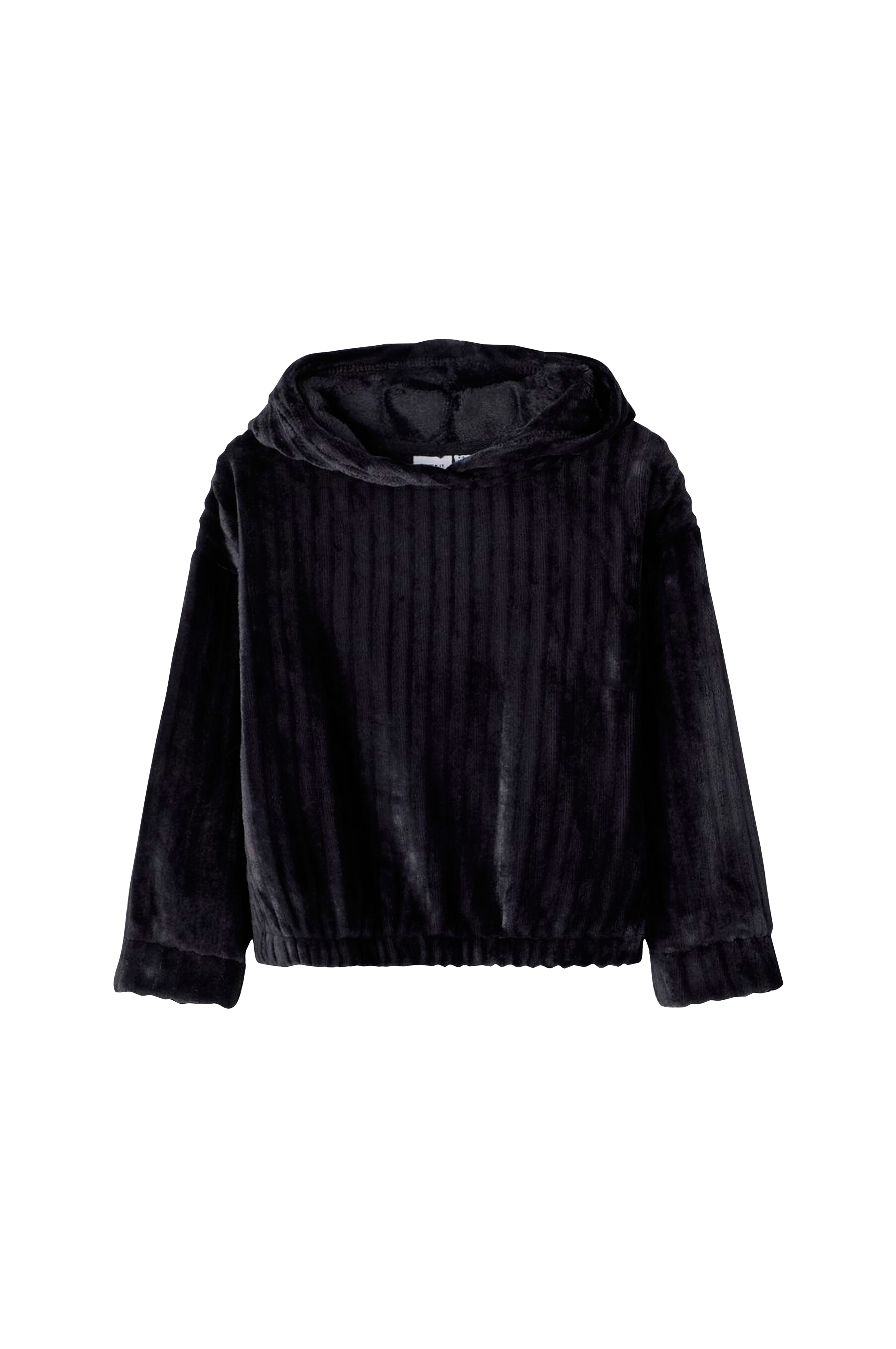Hættetrøje i blød, blank velour med inderside i fleece. Ribkanter i ærmekant og kanten forneden.