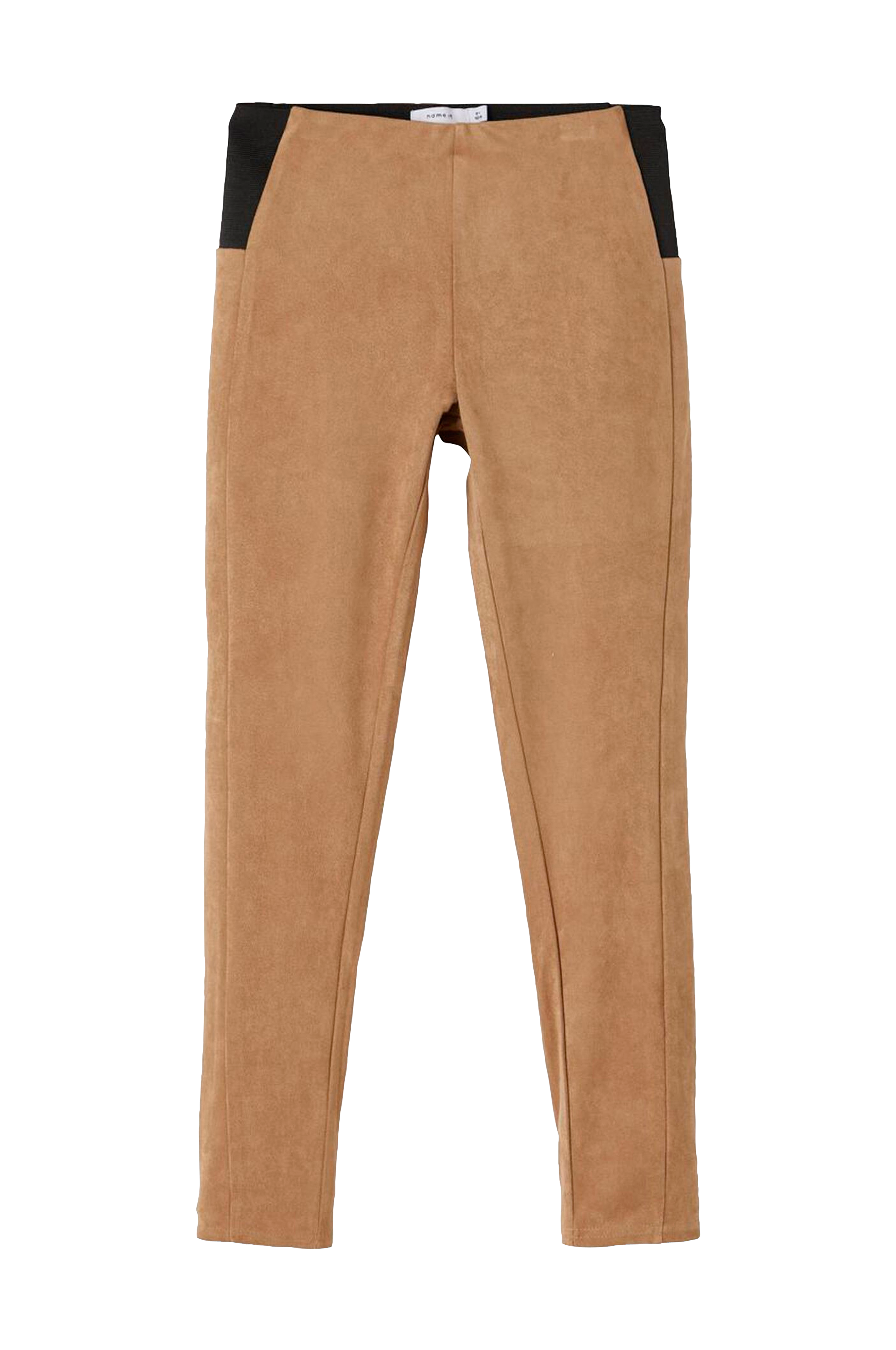 Leggings i stretchjersey med ruskindslook. Elastisk linning med elastikindsatse i siderne.