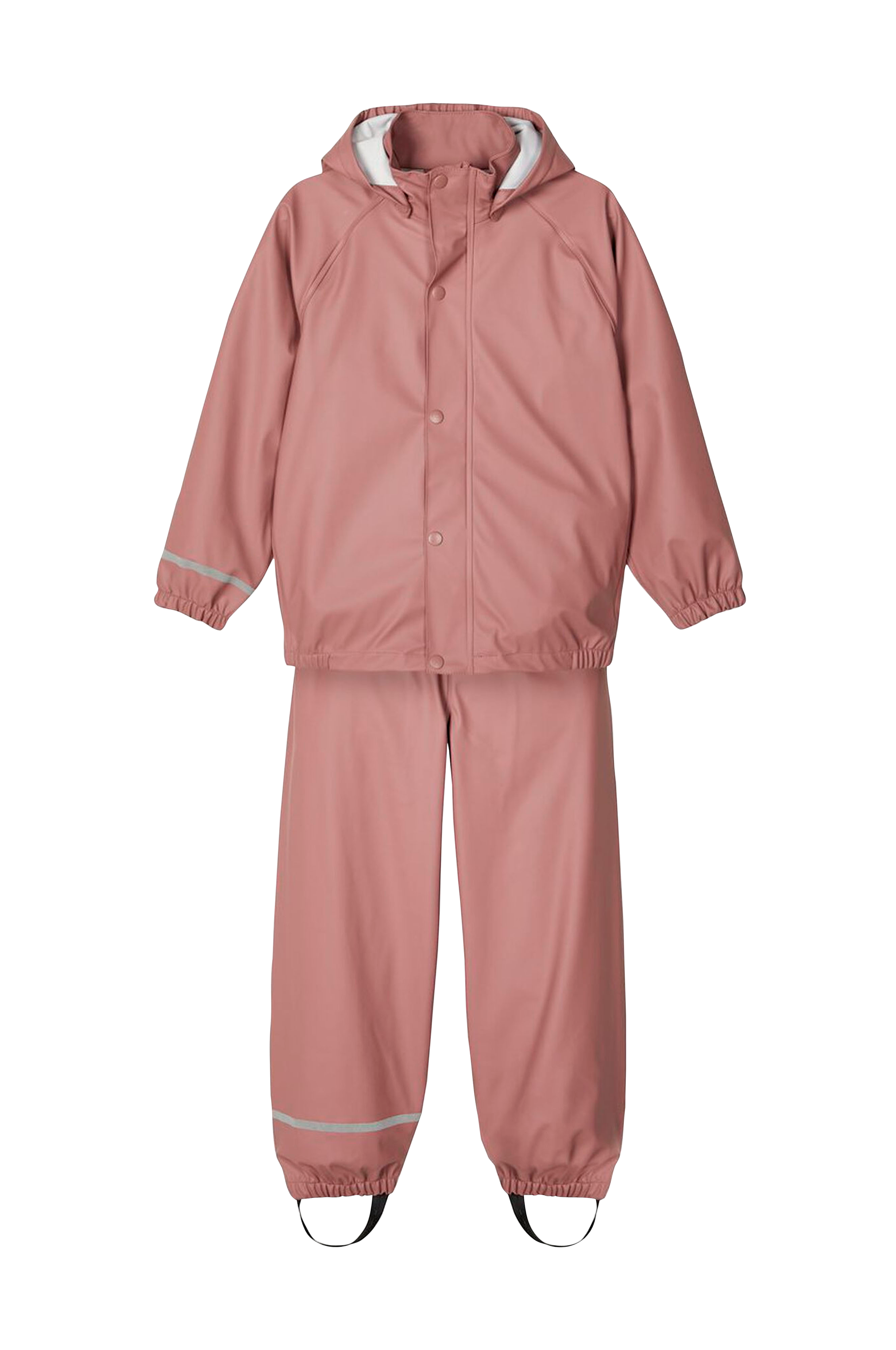 Regnsæt nknDry Rain Set Noos fra Name it i PU med printet mønster. Regnsættet er vind- og vandtæt og alle sømme er forseglede. Vandsøjletryk 10000 mm. Jakken har en aftagelig hætte med elastik i forkanten. Lynlås med hagebeskytter og beskyttende overfald med trykknapper. Elastik i ærmekant og kanten forneden. Bukserne har elastiske, justerbare seler. Elastik i benkanten. Elastiske, aftagelige fodstropper. Str. 80-104 har seler og fra str. 110 taljeelastik. Både jakken og buksen har refleksdetaljer hele vejen rundt.