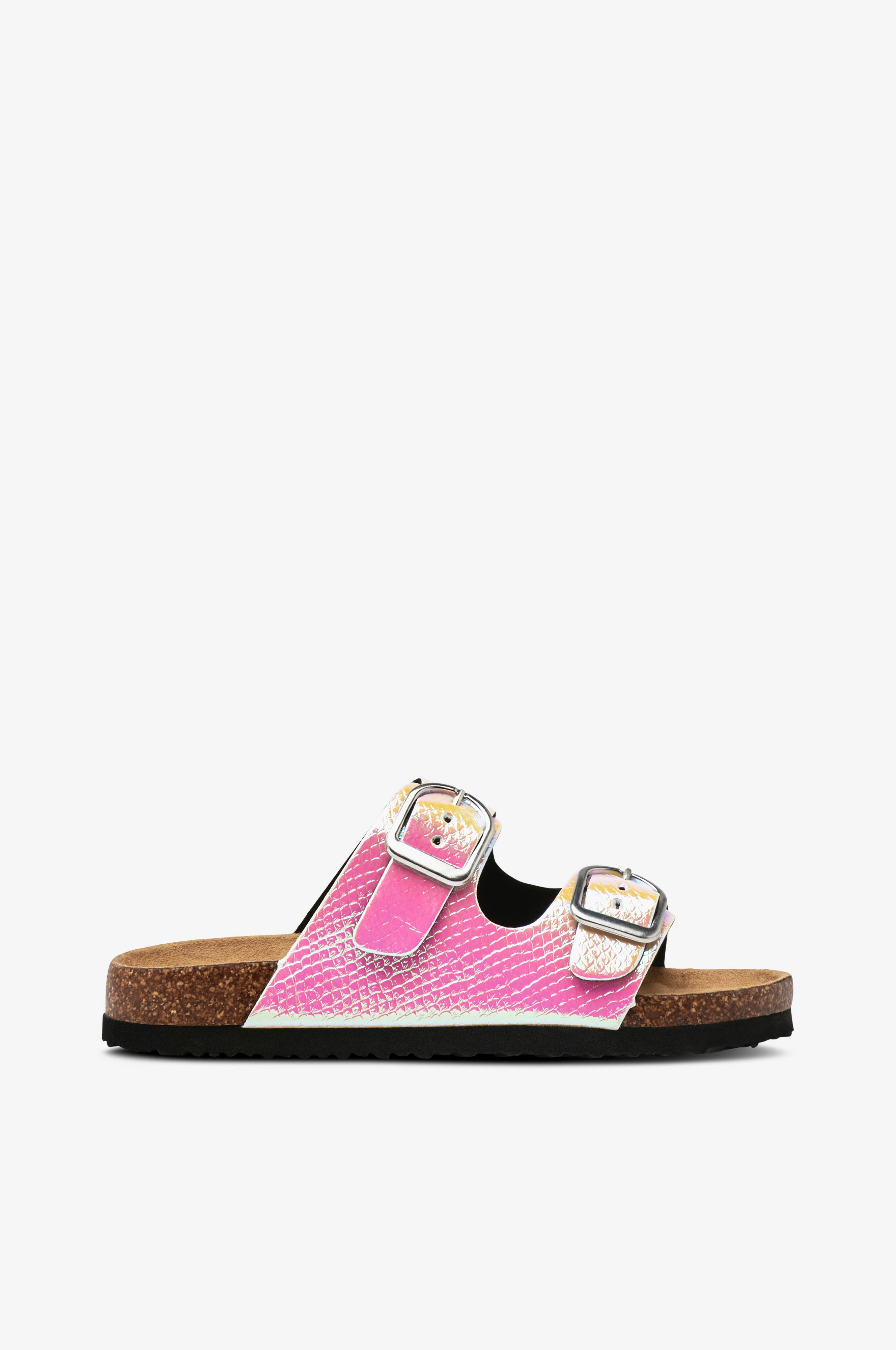 • Sandaler i kunststof med tekstilforing• Formet fodseng i ruskindsmateriale• Justérbare remme