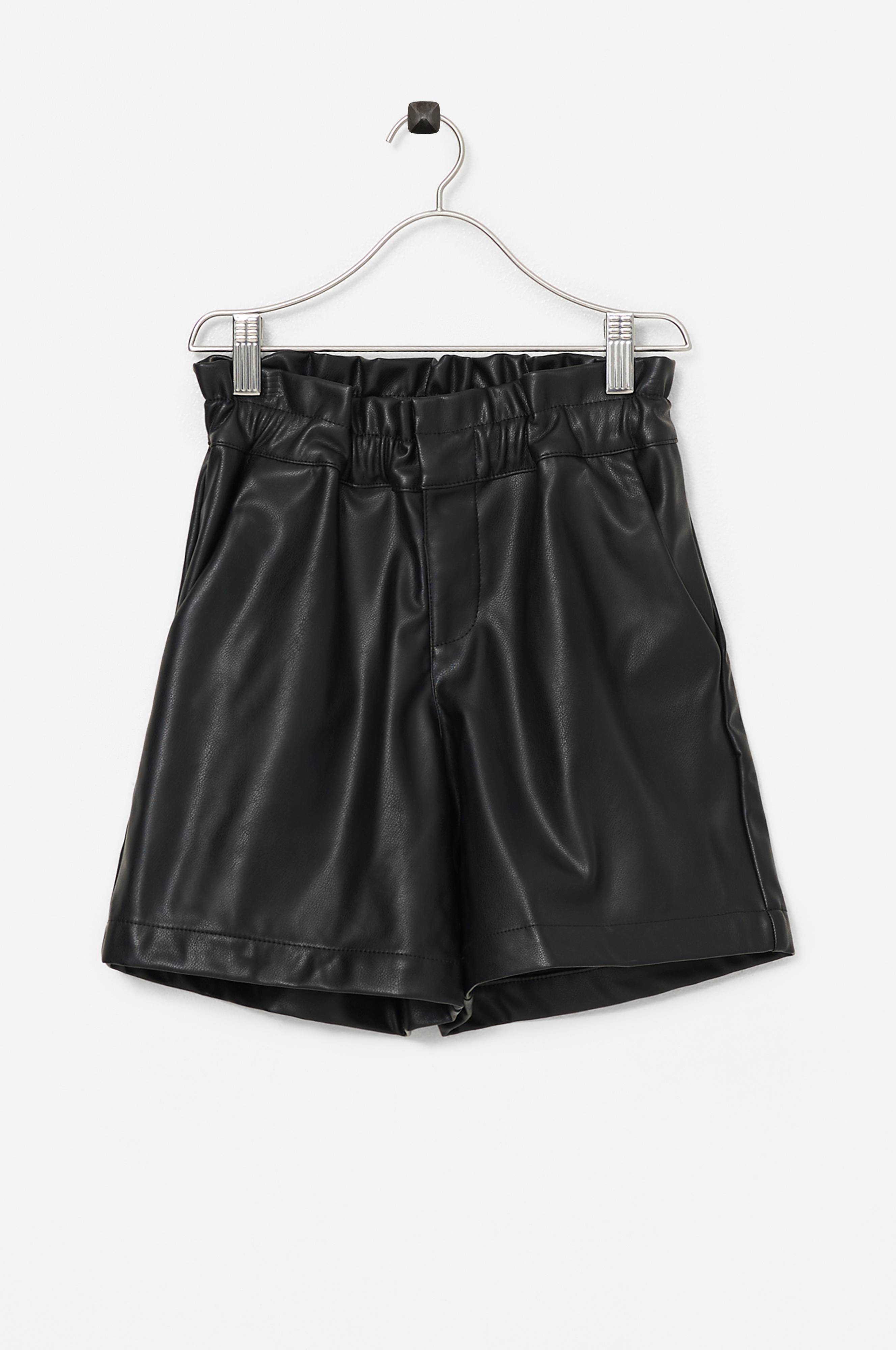 • Shorts i imiteret læder• Elastisk, justérbar talje med trykknap• Sidelommer