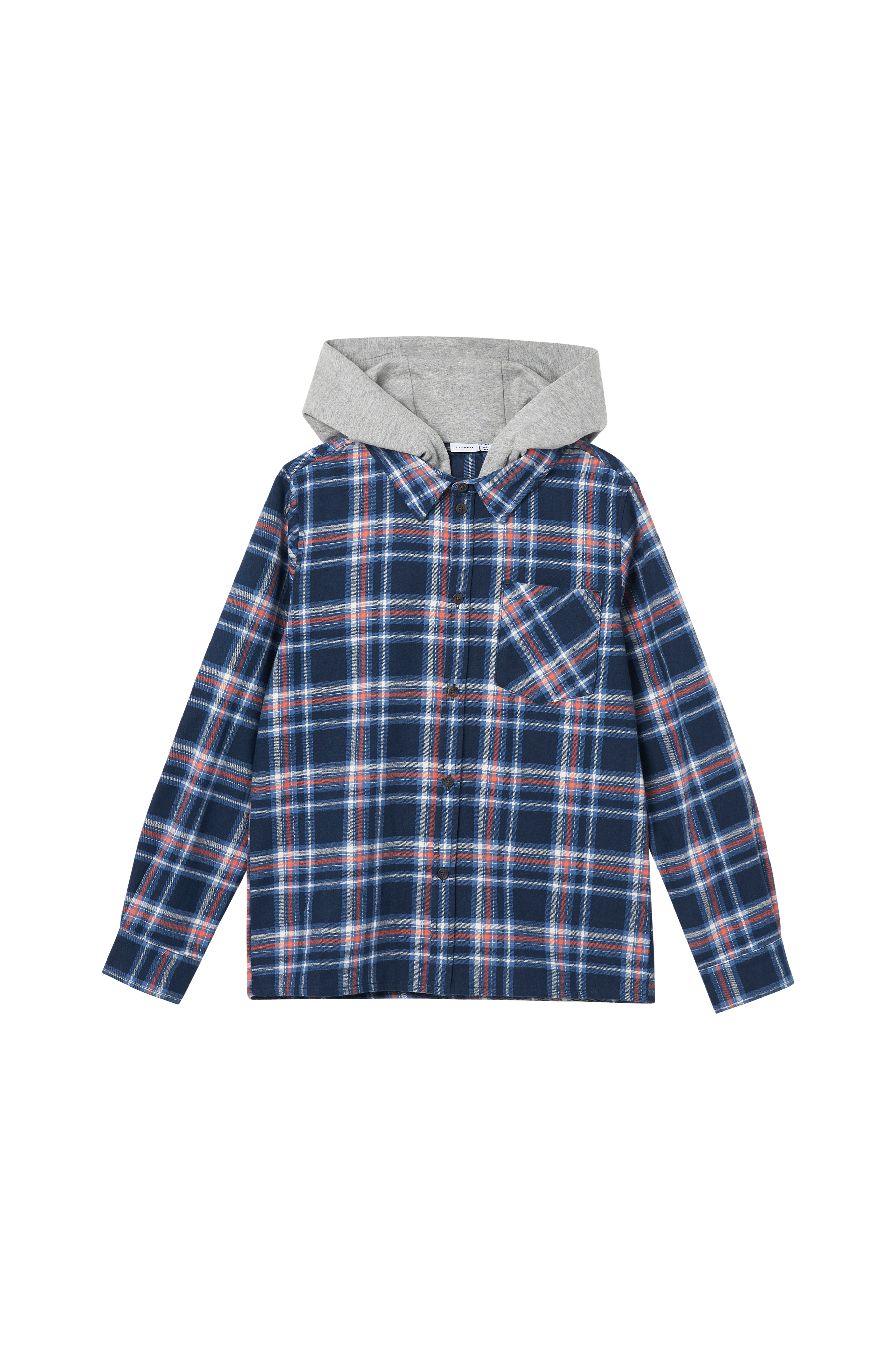 • Ternet skjorte i bomuld• Hætte i sweatshirt• En brystlomme• Manchet med en knap