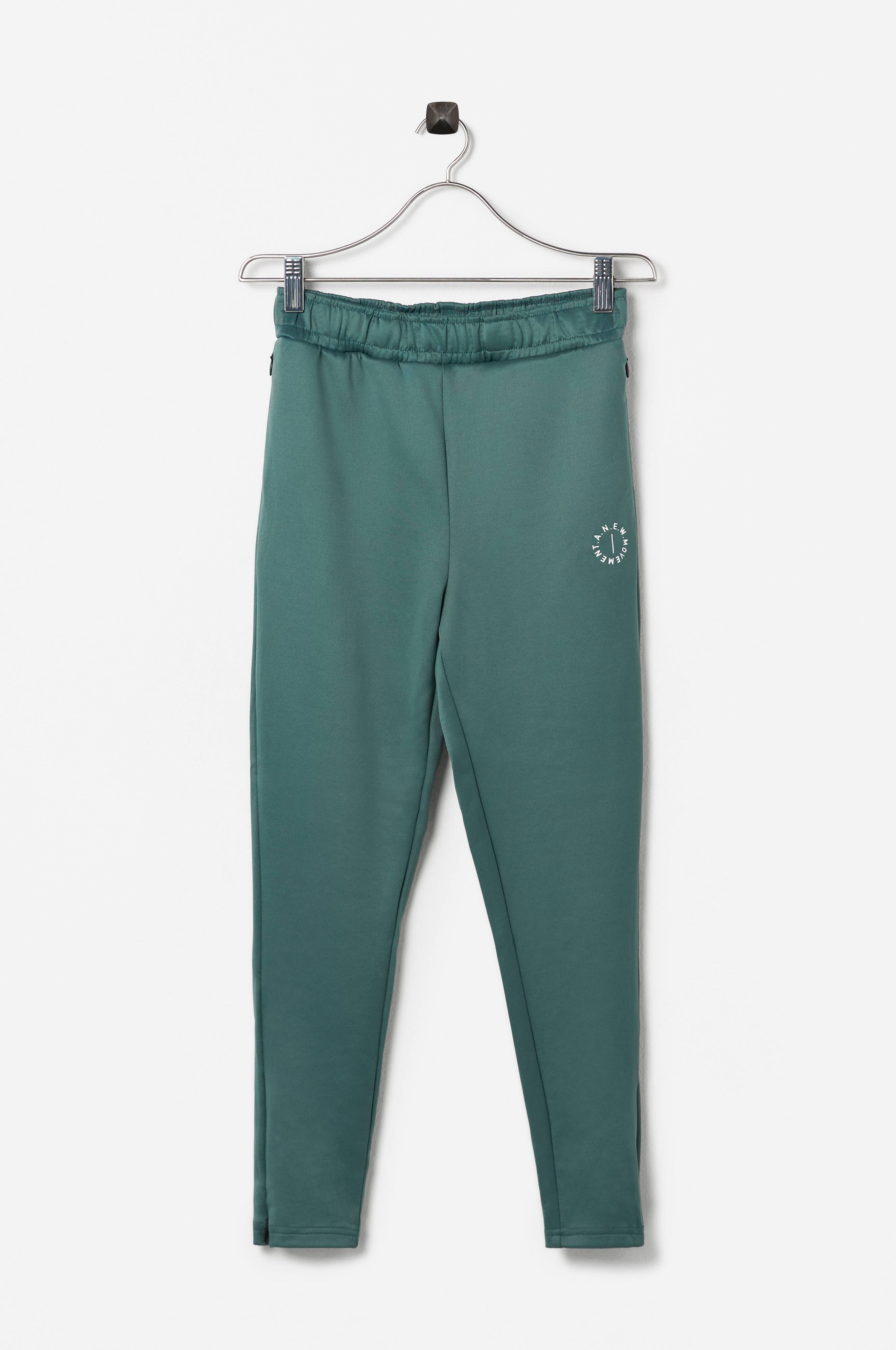Sweatbukser i blank polyesterblanding med stretch. Elastisk talje med justerbar knaphulselastik på indersiden. Skjulte lommer med lynlås i siderne. Lynlås i benkant.