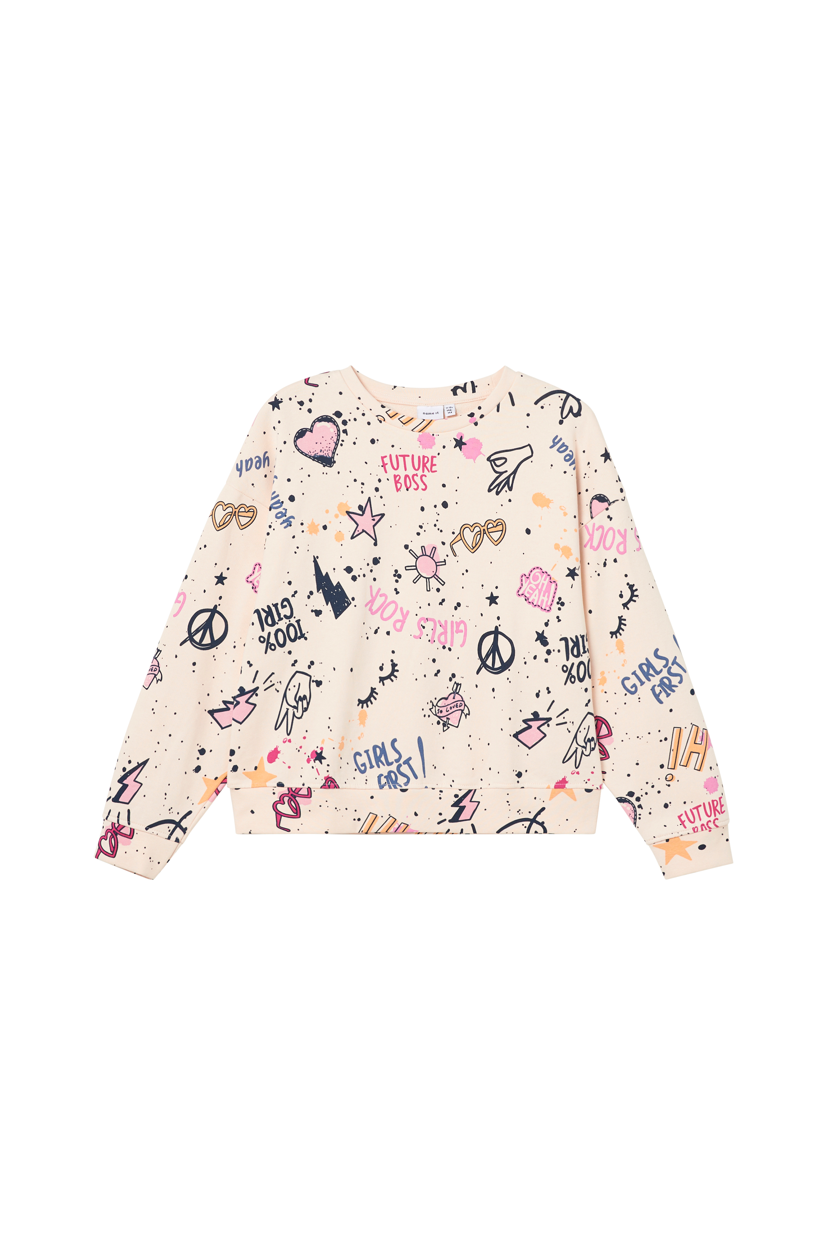 Sweatshirt med løs pasform. Rund hals med ribkant og printet mønster. Ribkant i ærmekant og forneden.