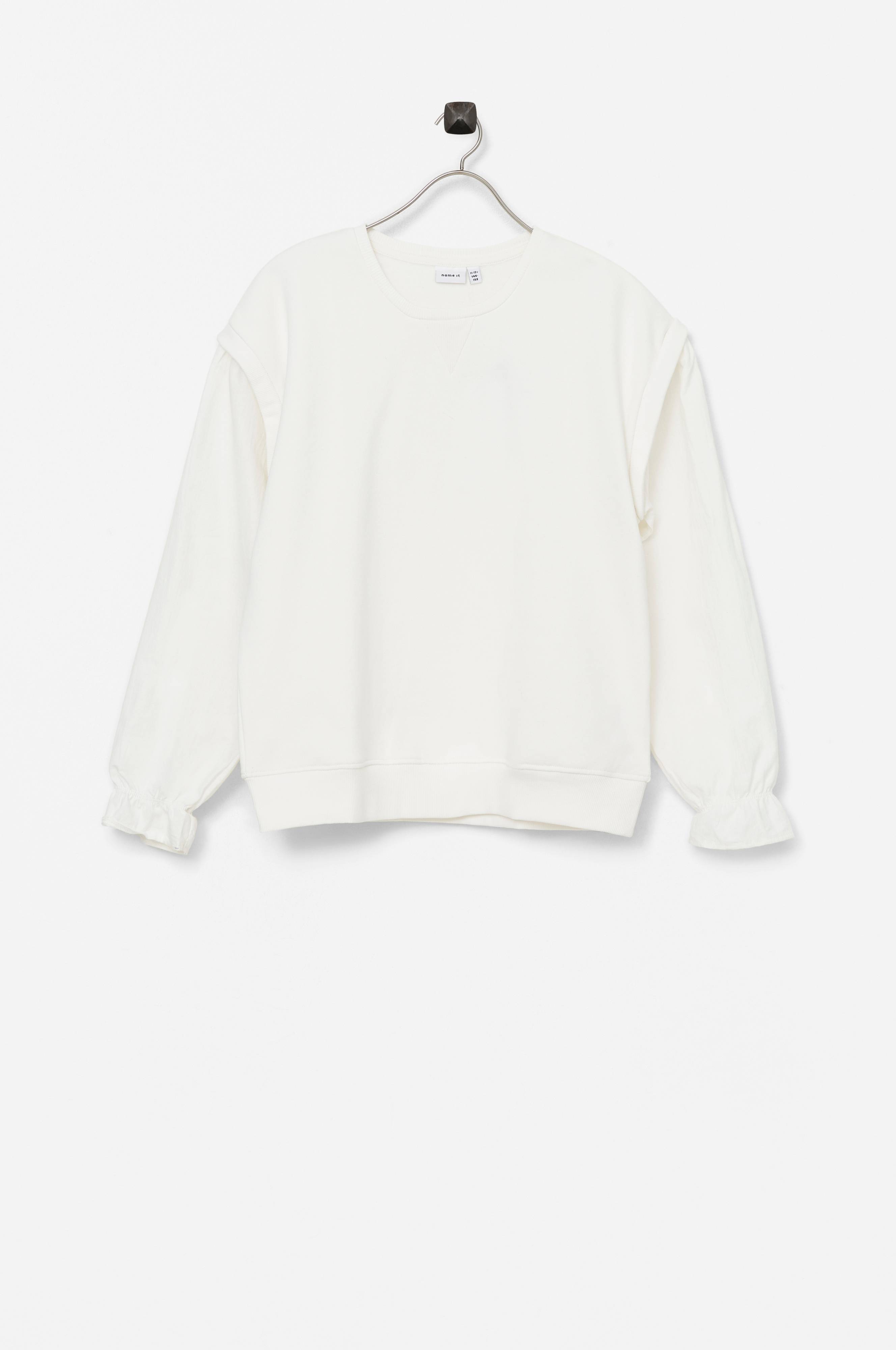 Sweatshirt med blød, børstet inderside og vide ærmer i et vævet stof. Rund hals og elastik i ærmekant. Ribkant i kanten forneden.