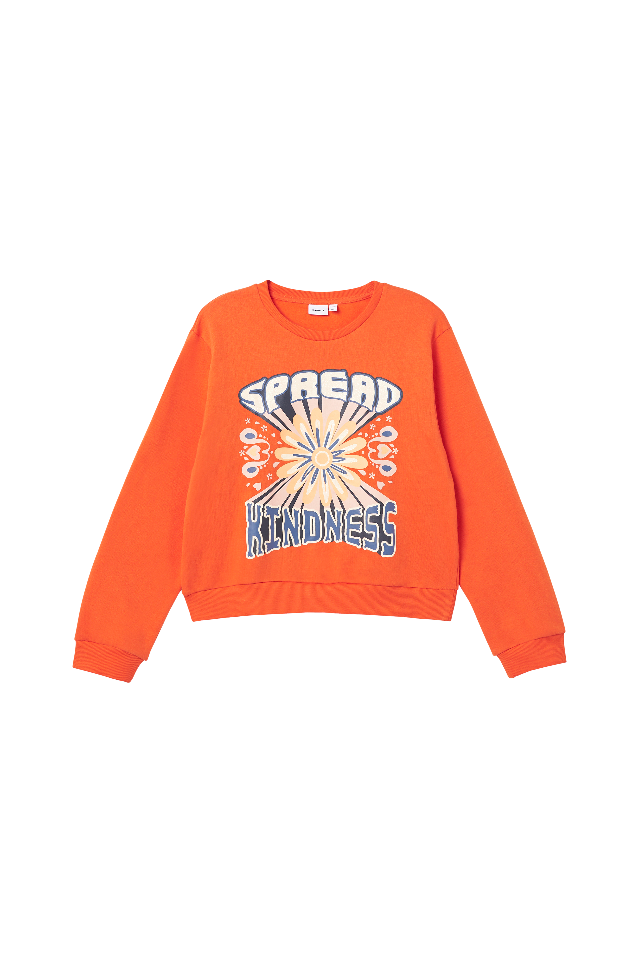 Sweatshirt med print foran. Ribkant i ærmekant og forneden. Lav skulder.