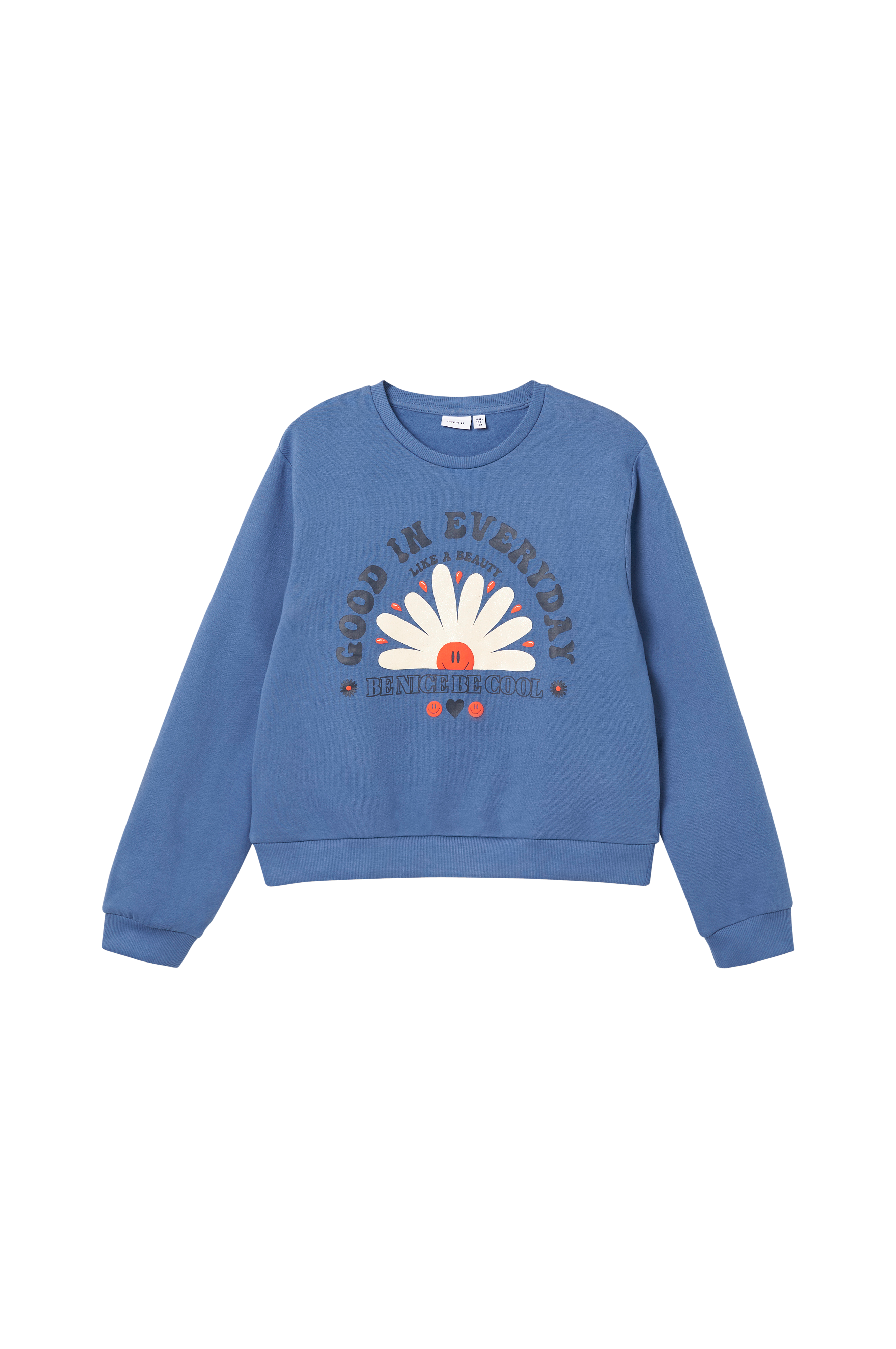 Sweatshirt med print foran. Ribkant i ærmekant og forneden. Lav skulder.