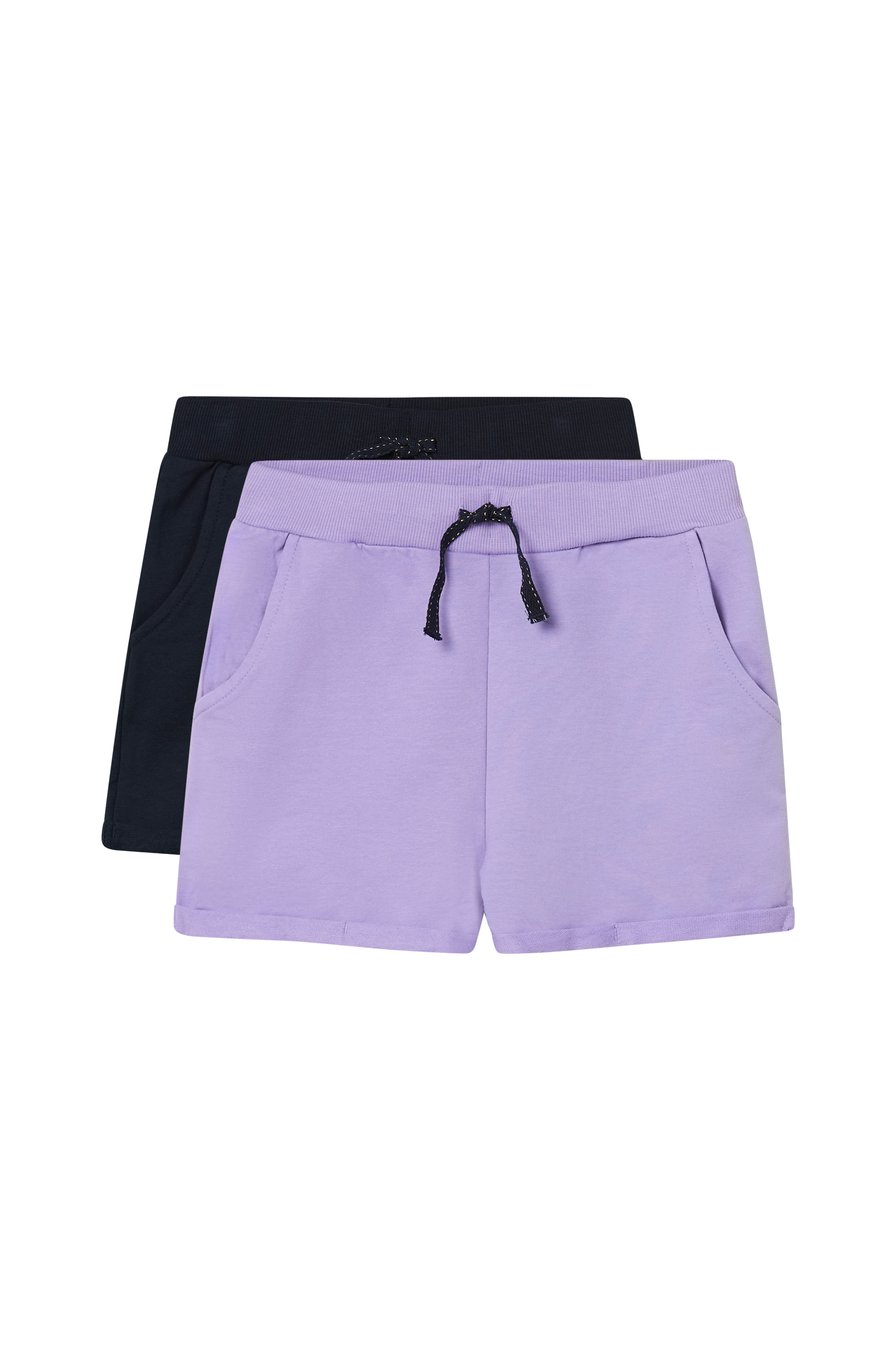 • Ribbet, justérbar talje med træksnørre• To lommer• Syede benafslutninger• Stræk• 2-pak