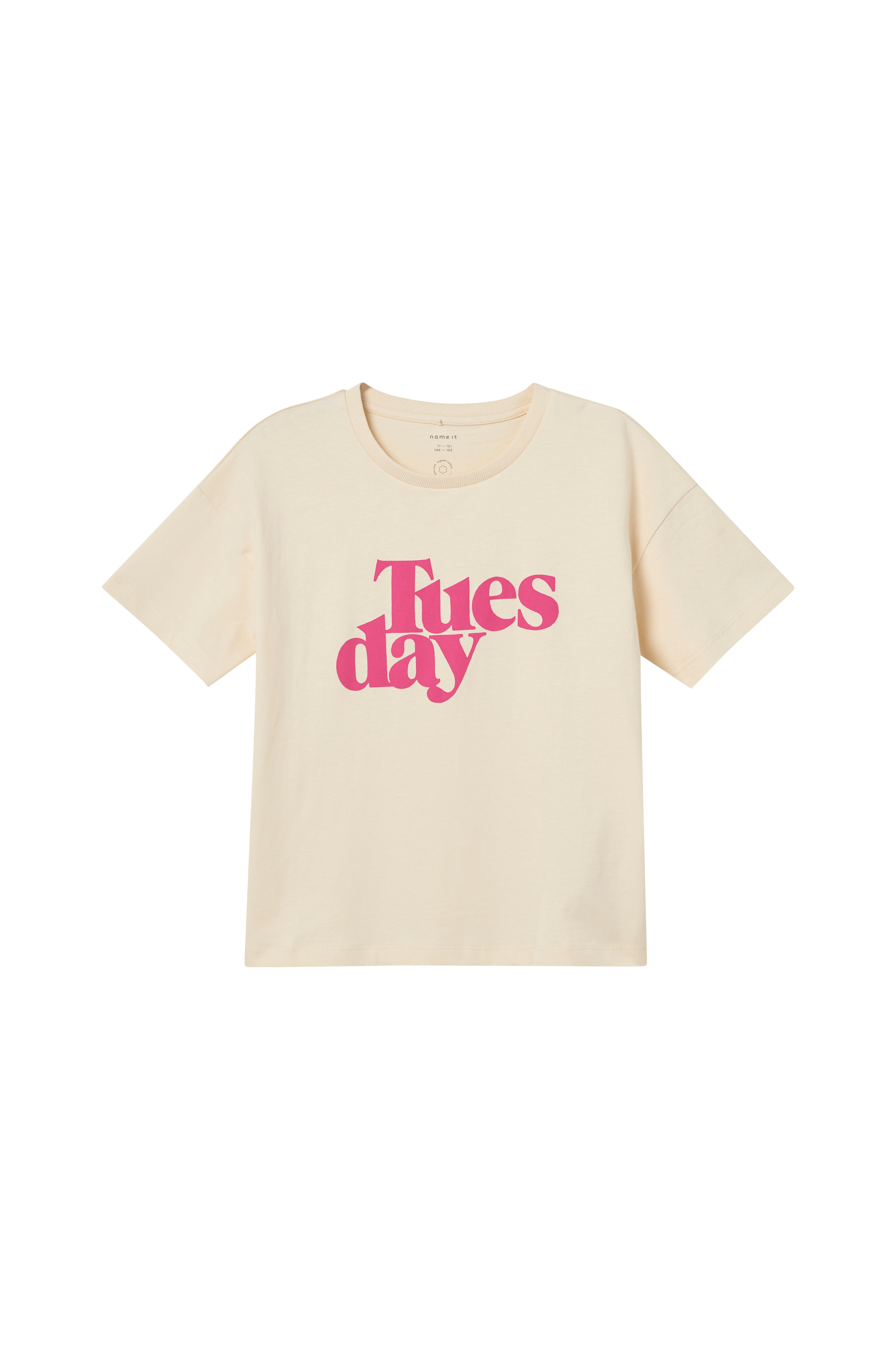 • Kort ærme• Rund hals• Tryk foran• Produktet indeholder økologisk bomuld, som er dyrket uden kemiske sprøjtemidler, kunstgødning og genmodificerede afgrøder (GMO). Dette betyder et sundere arbejdsmiljø for landmænd og bedre jord.