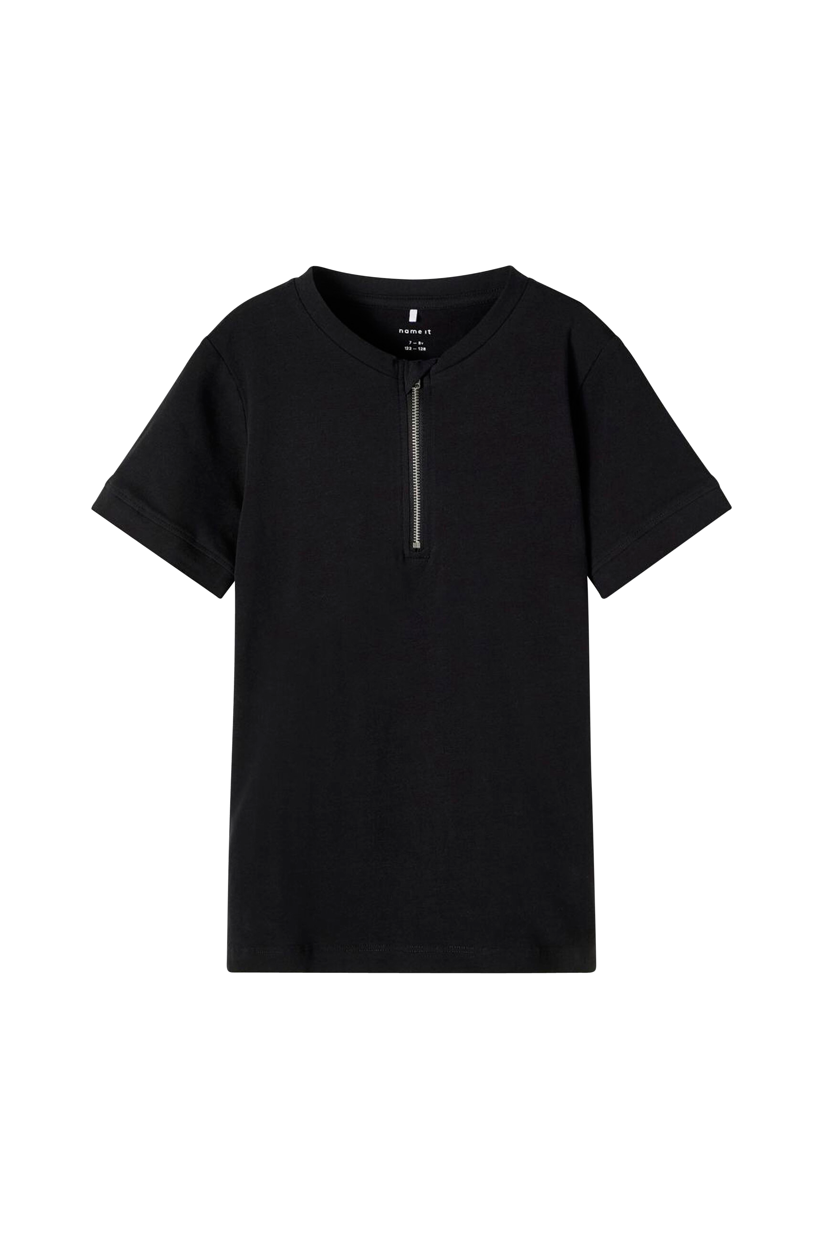 T-shirt i blød, økologisk bomuld med stretch. Rund hals med kort lynlås foran.