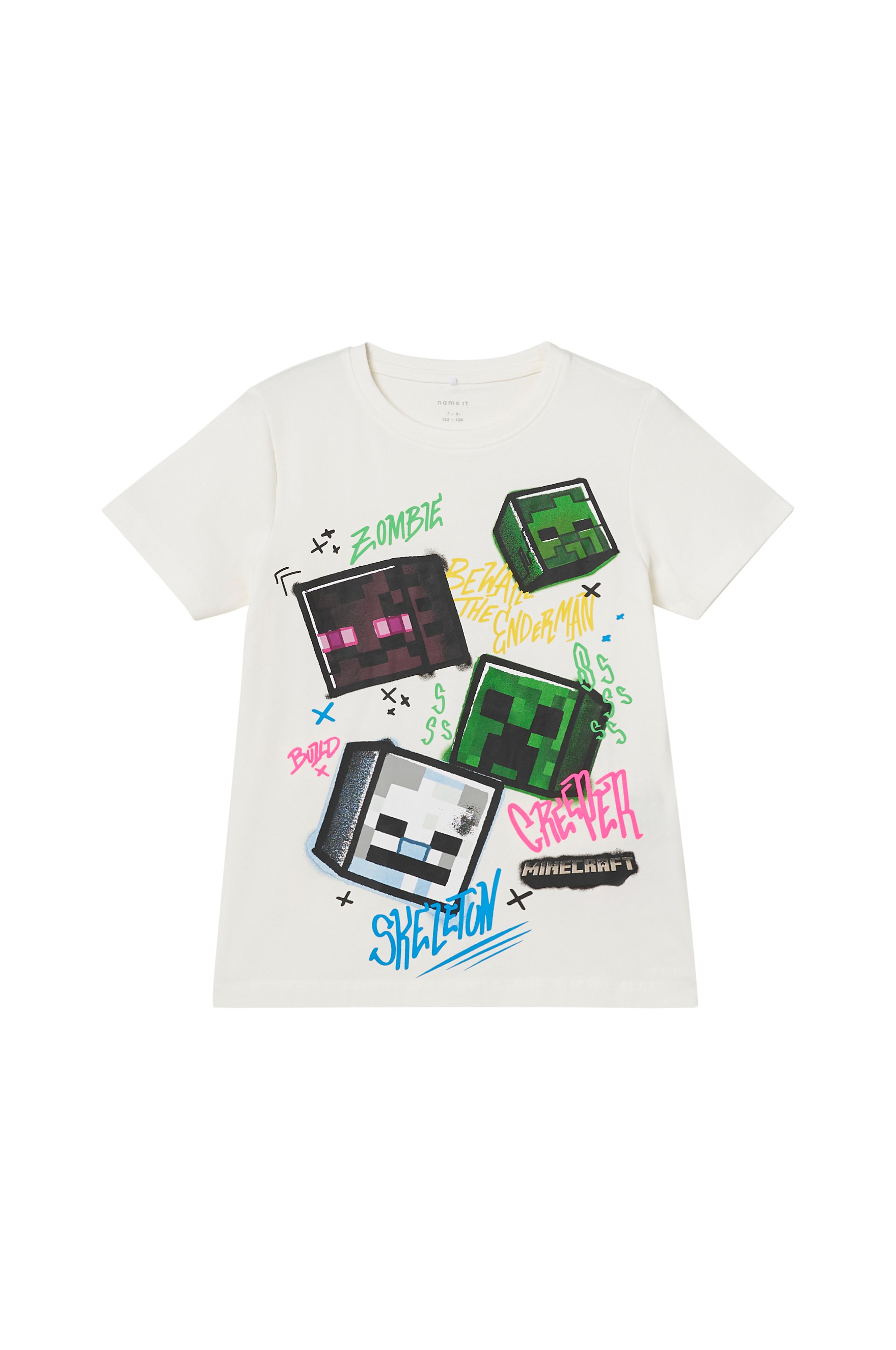 • Stort, multifarvet tryk foran• Rund hals med ribstrik• Kort ærme