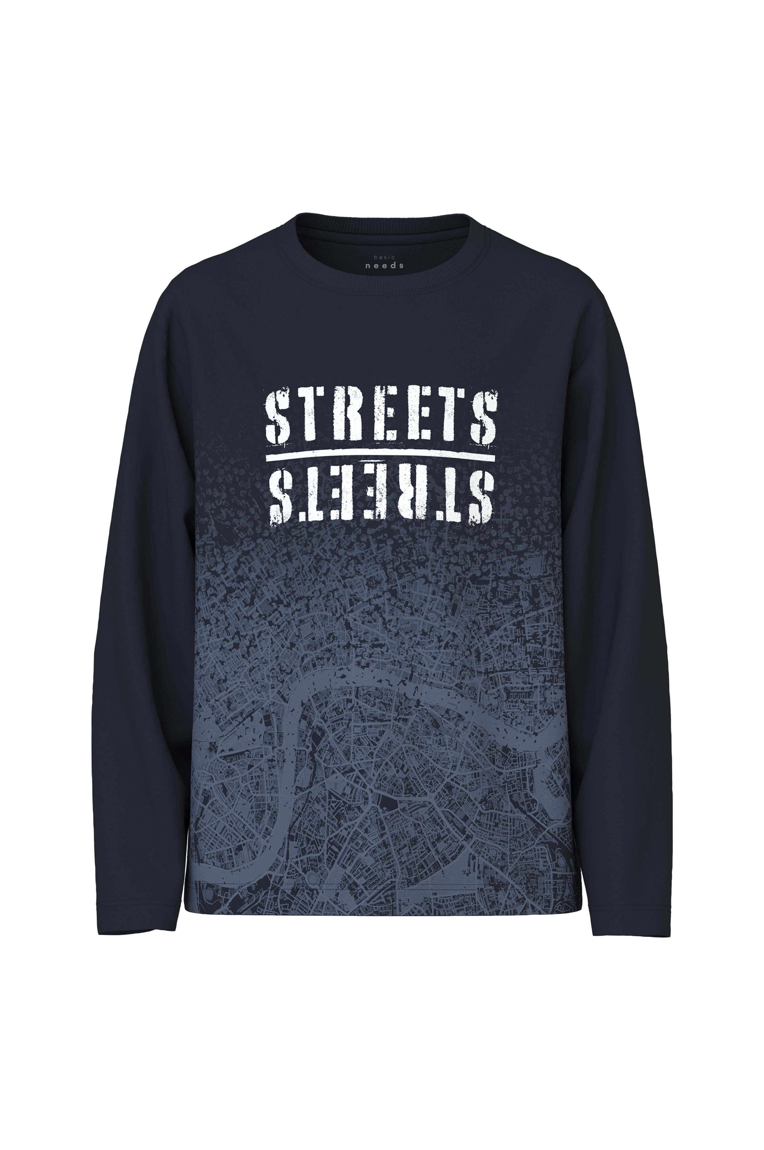 • Langærmet t-shirt• Rund, ribbet halsudskæring• Tryk foran