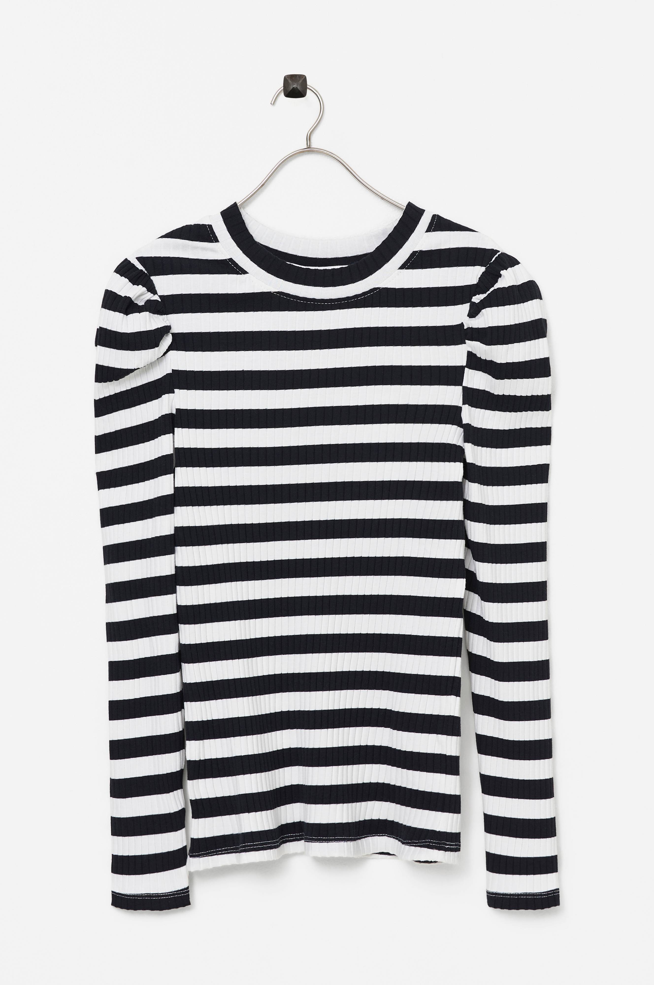 • Ribbet jersey med stræk • Rund halsudskæring • Pufærmer • Smal pasform • Produktet indeholder økologisk bomuld, som er dyrket uden kemiske sprøjtemidler, kunstgødning og genmodificerede afgrøder (GMO). Dette betyder et sundere arbejdsmiljø for landmænd og bedre jord.