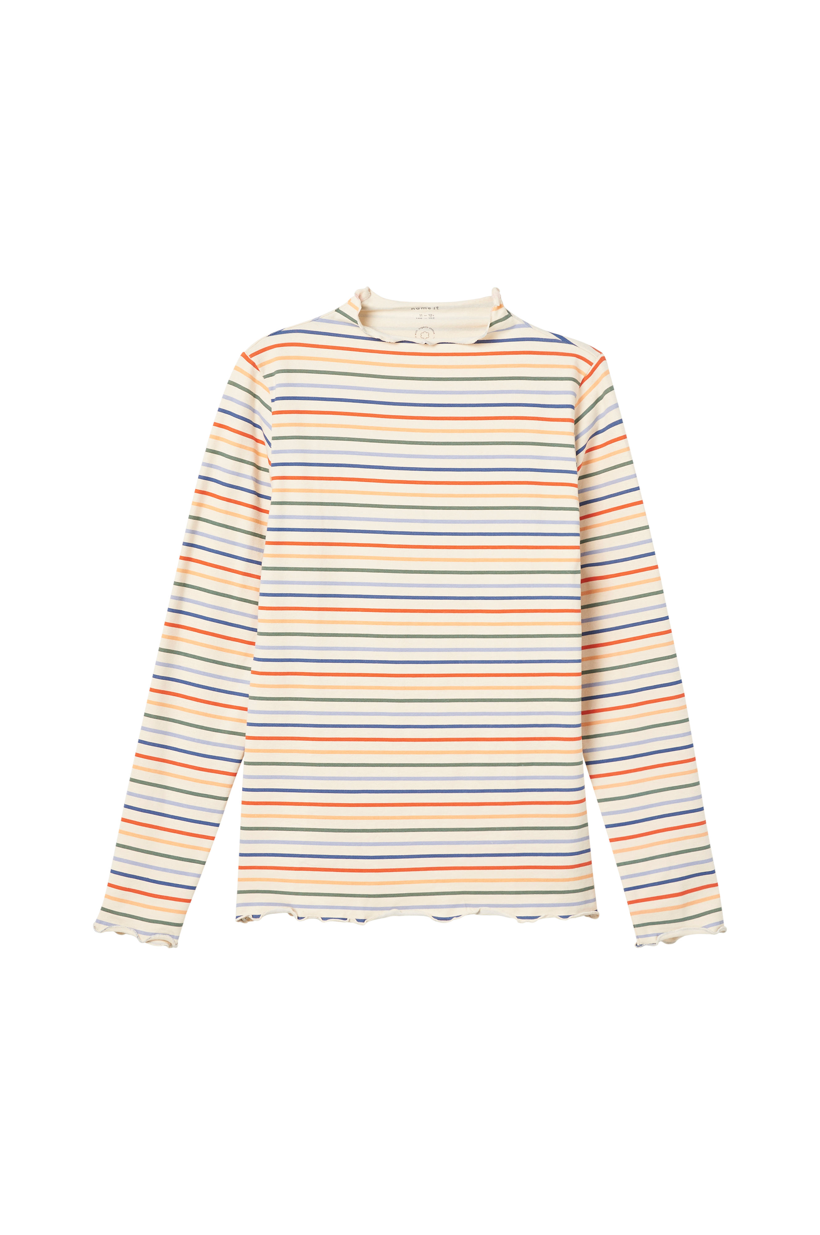 Langærmet top i bomuldsjersey. Bølget kant i hals, ærmekant og kant forneden.