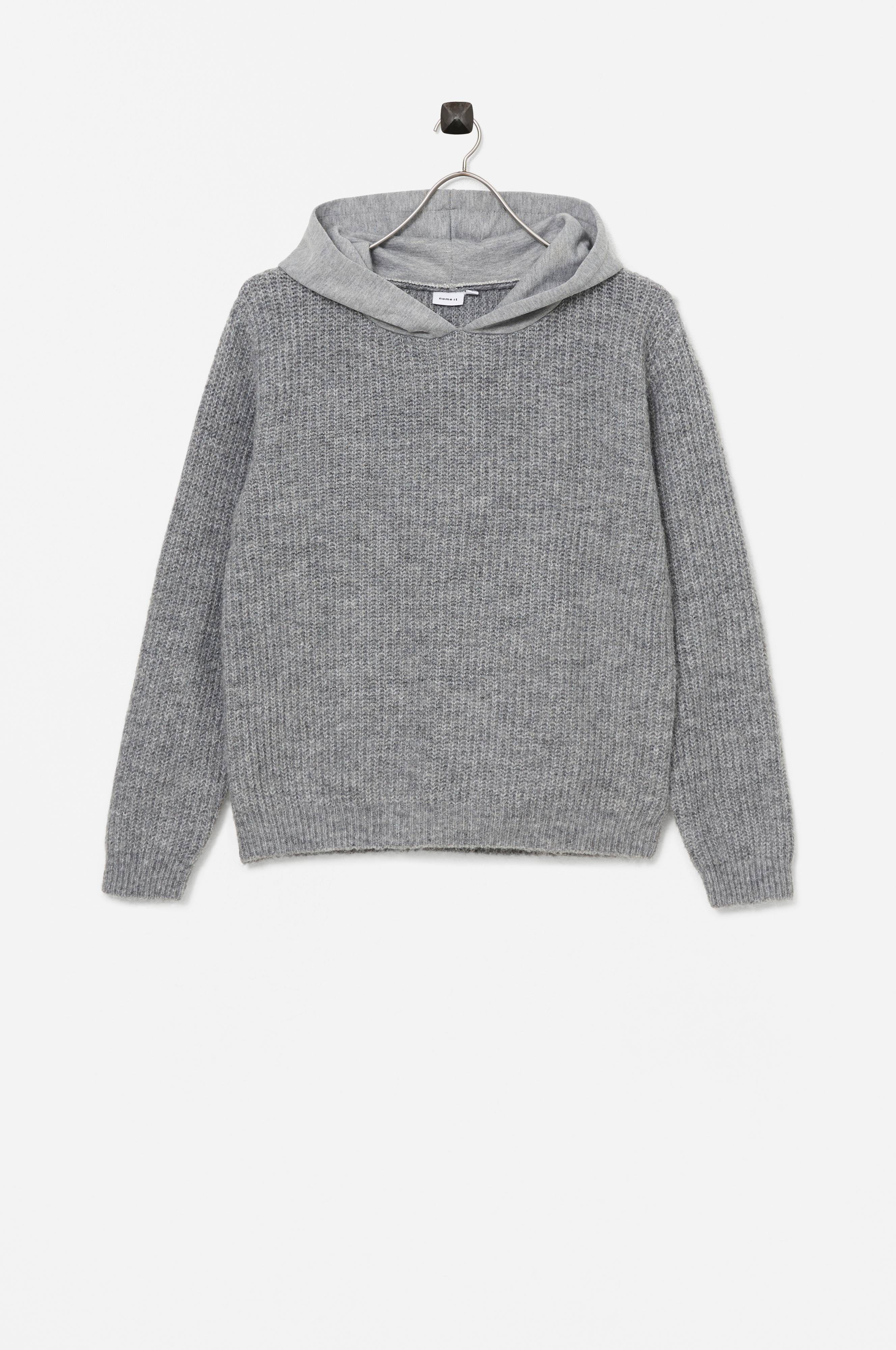 • Strikket trøje med hætte i jersey• Nedsænkede skuldre• Produktet indeholder genindvundet materiale, som genbruges for at reducere mængden af affald samtidigt med at der ikke anvendes nye ressourcer.