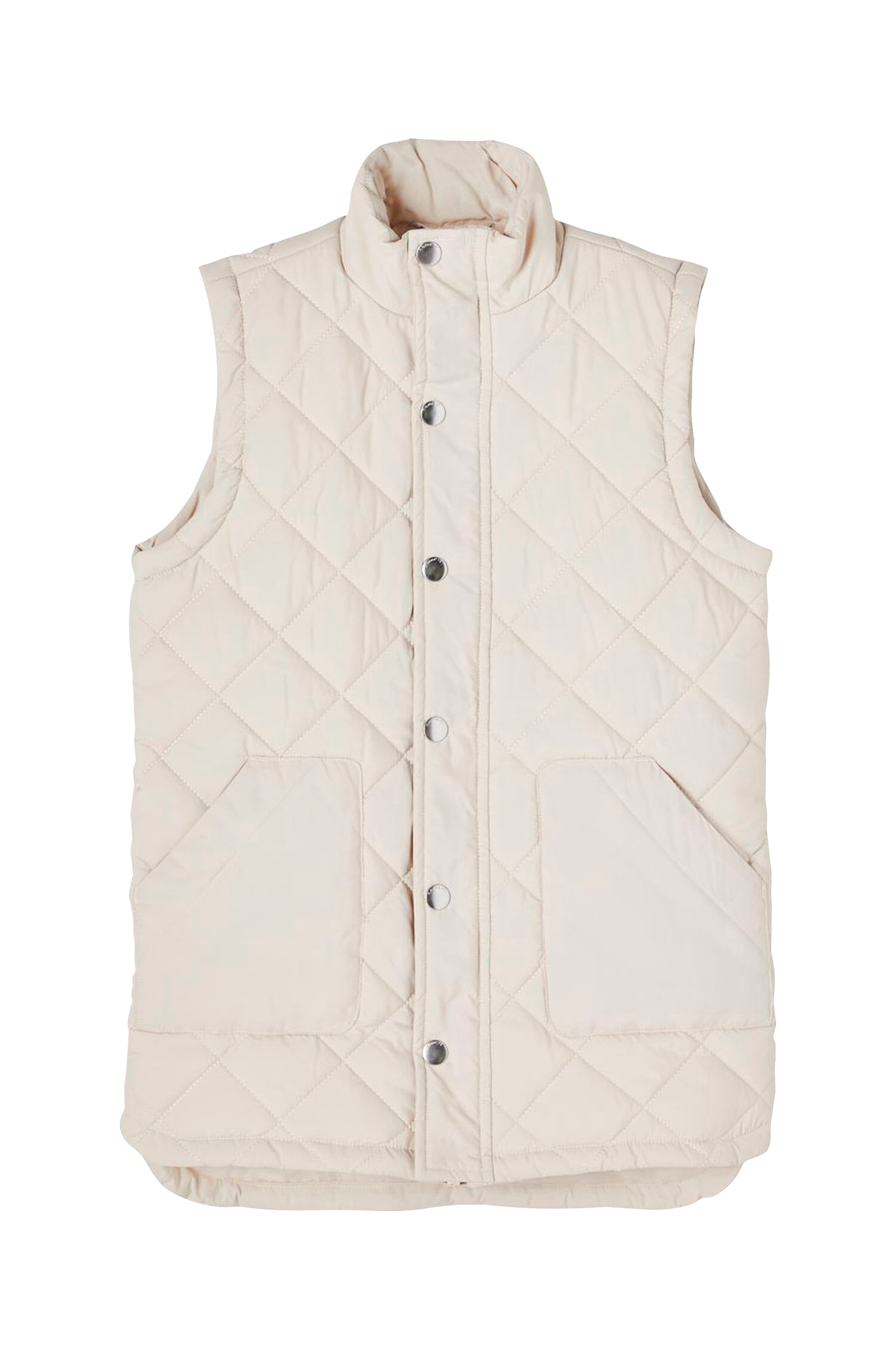 • Quiltet, foret vest• Lynlås• Trykknapper• To lommer• Produktet indeholder genindvundet materiale, som genbruges for at reducere mængden af affald samtidigt med at der ikke anvendes nye ressourcer.