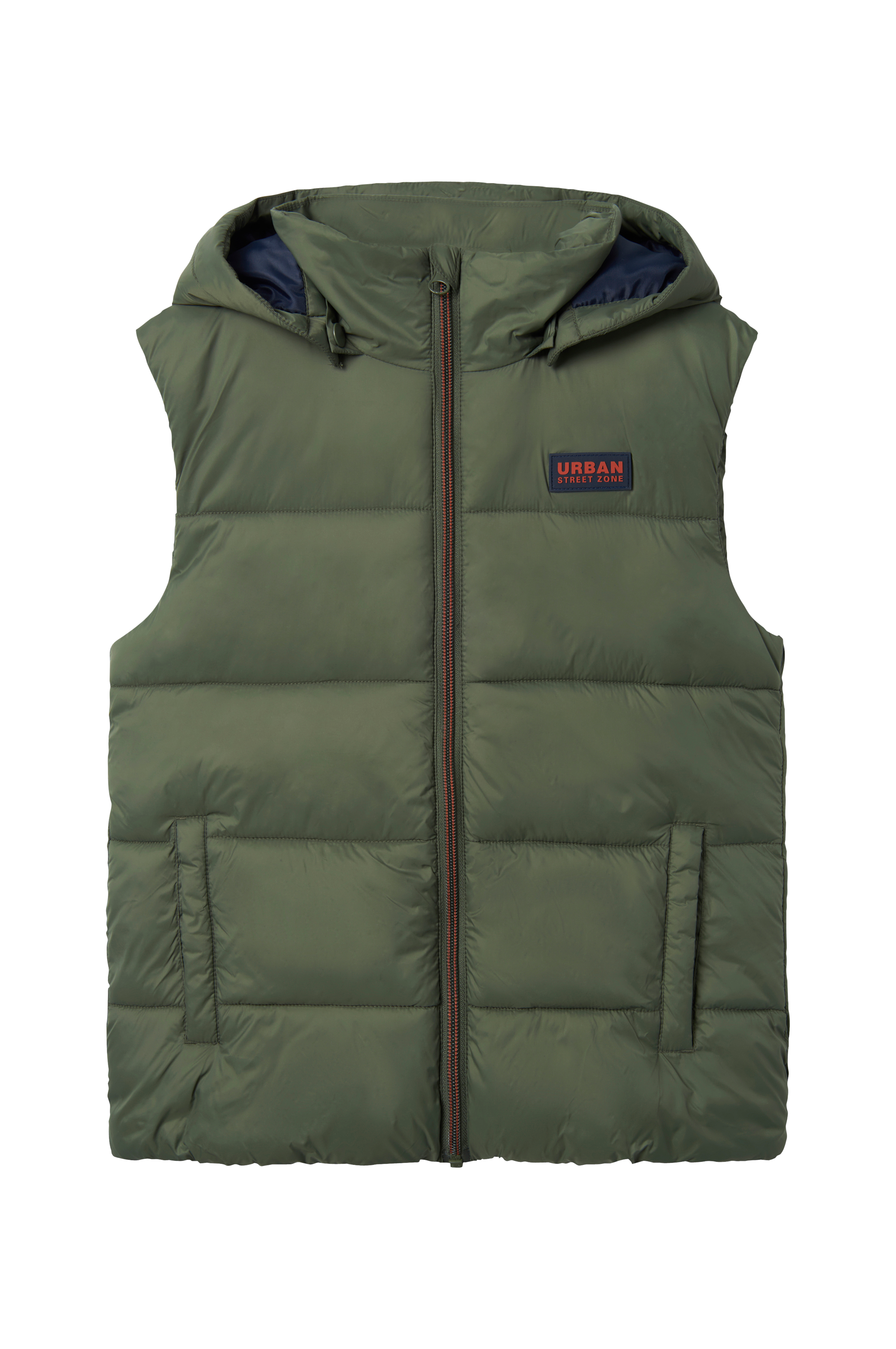 • Quiltet, foret vest• Aftagelig hætte• Lynlås• To lommer