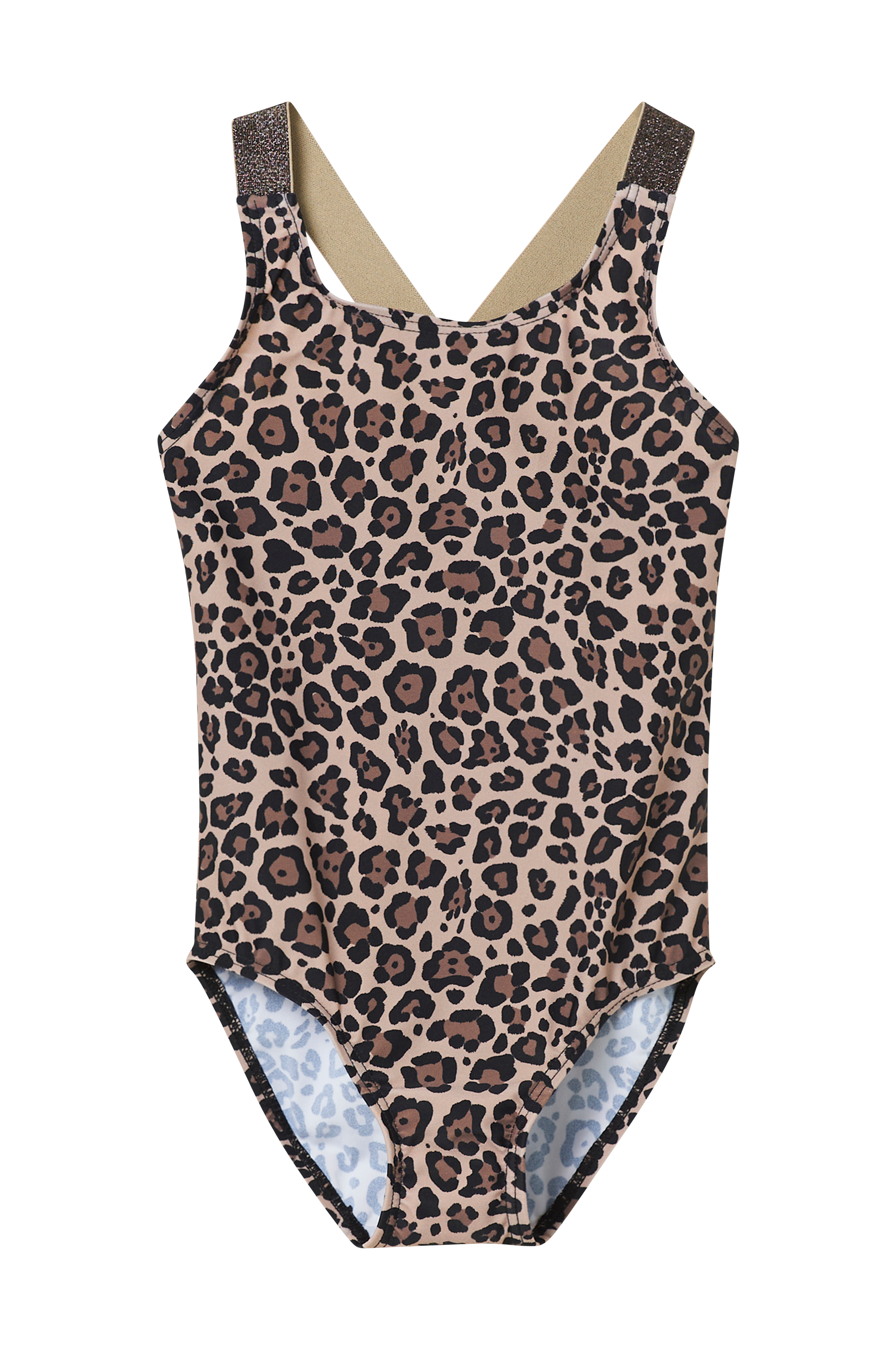 • Badedragt med et zebramu00f8nster• Glitrende, krydsende skulderstropper