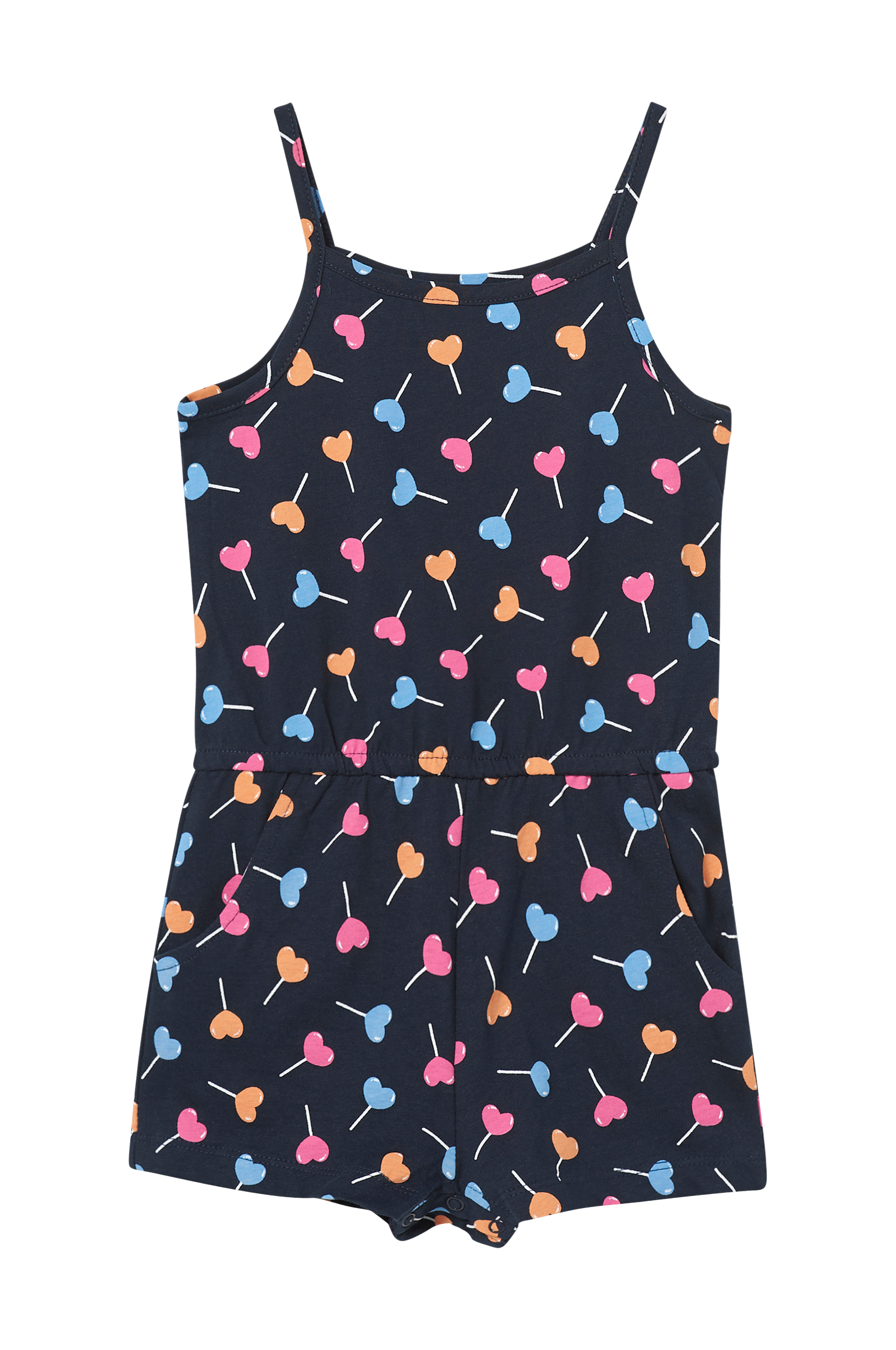 • Ærmeløs buksekjole med tynde skulderstropper• Elastisk bånd ved taljen• Korte ben• To lommer